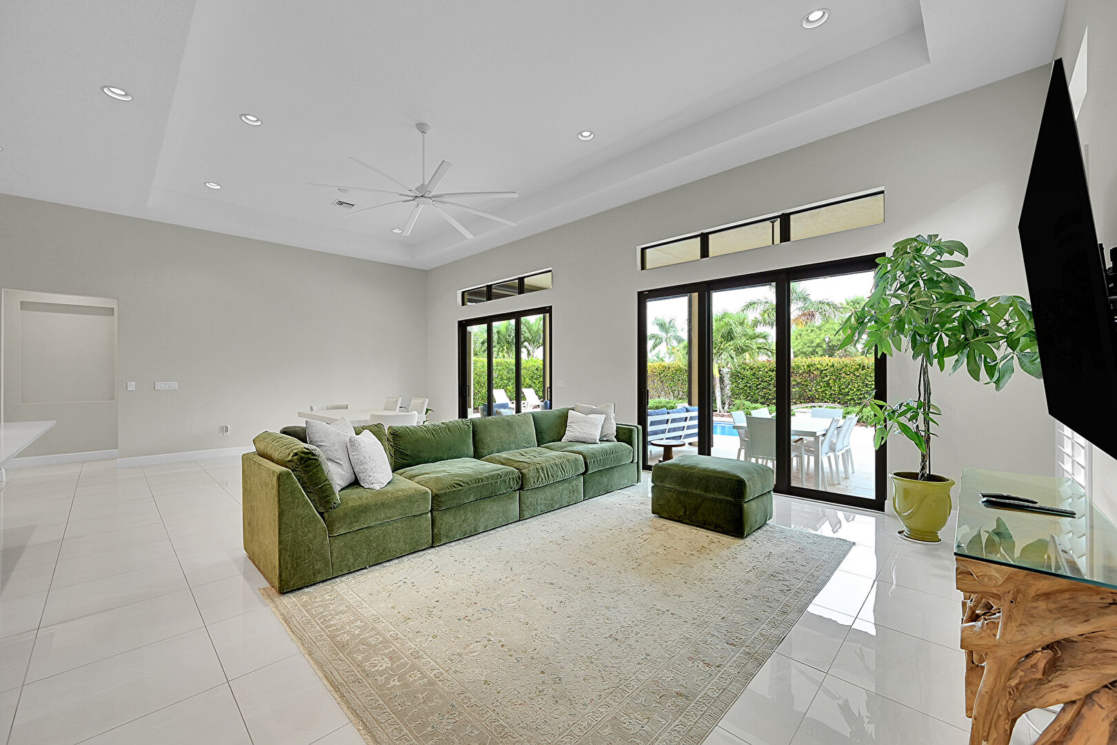 Baseboards Wall, Ceiling Fan, Drywall, L Shaped Kitchen, Natural Light, Recessed Lighting, Tile Floor, Tray Ceiling, Vent, Ceiling Fan, High Ceiling