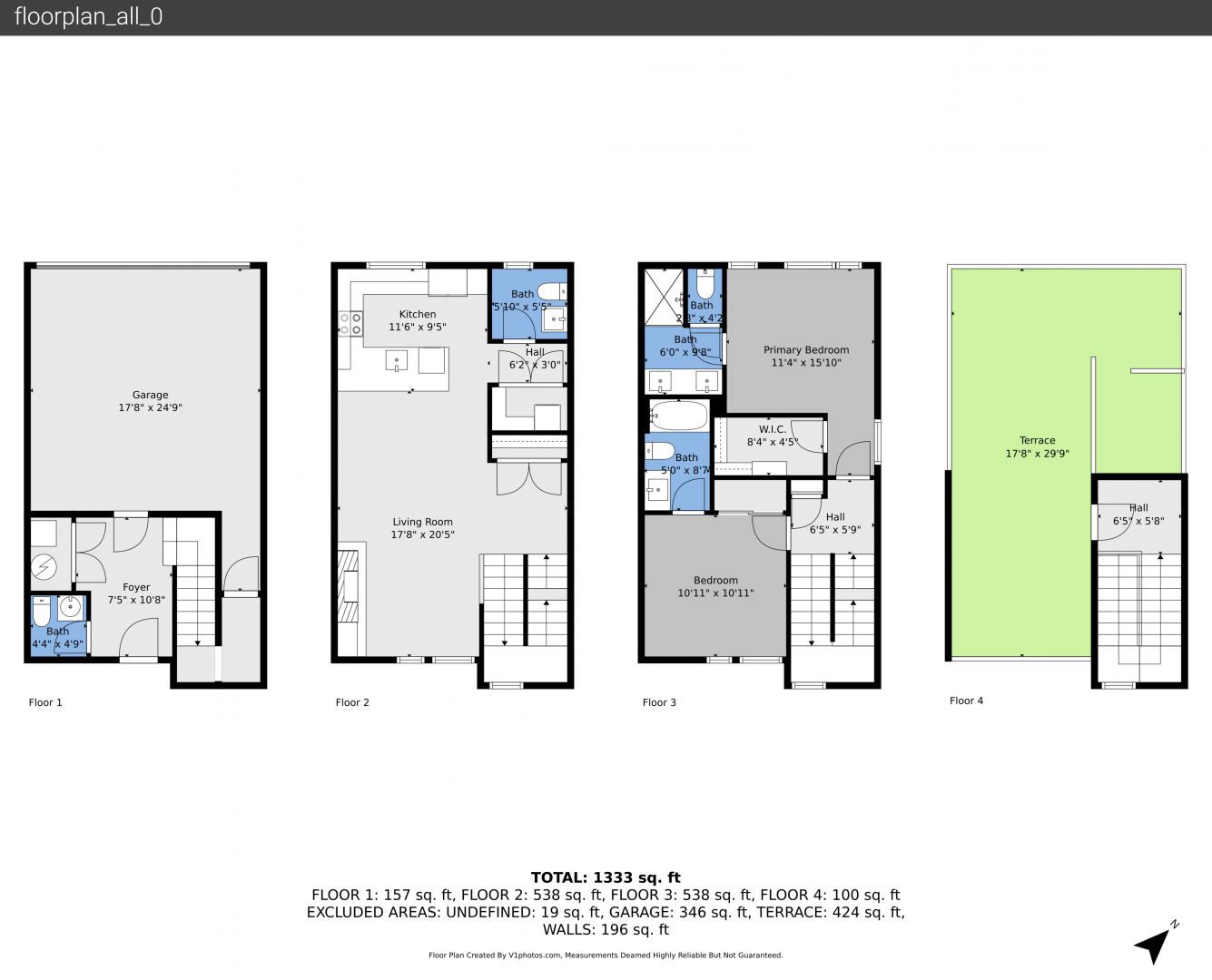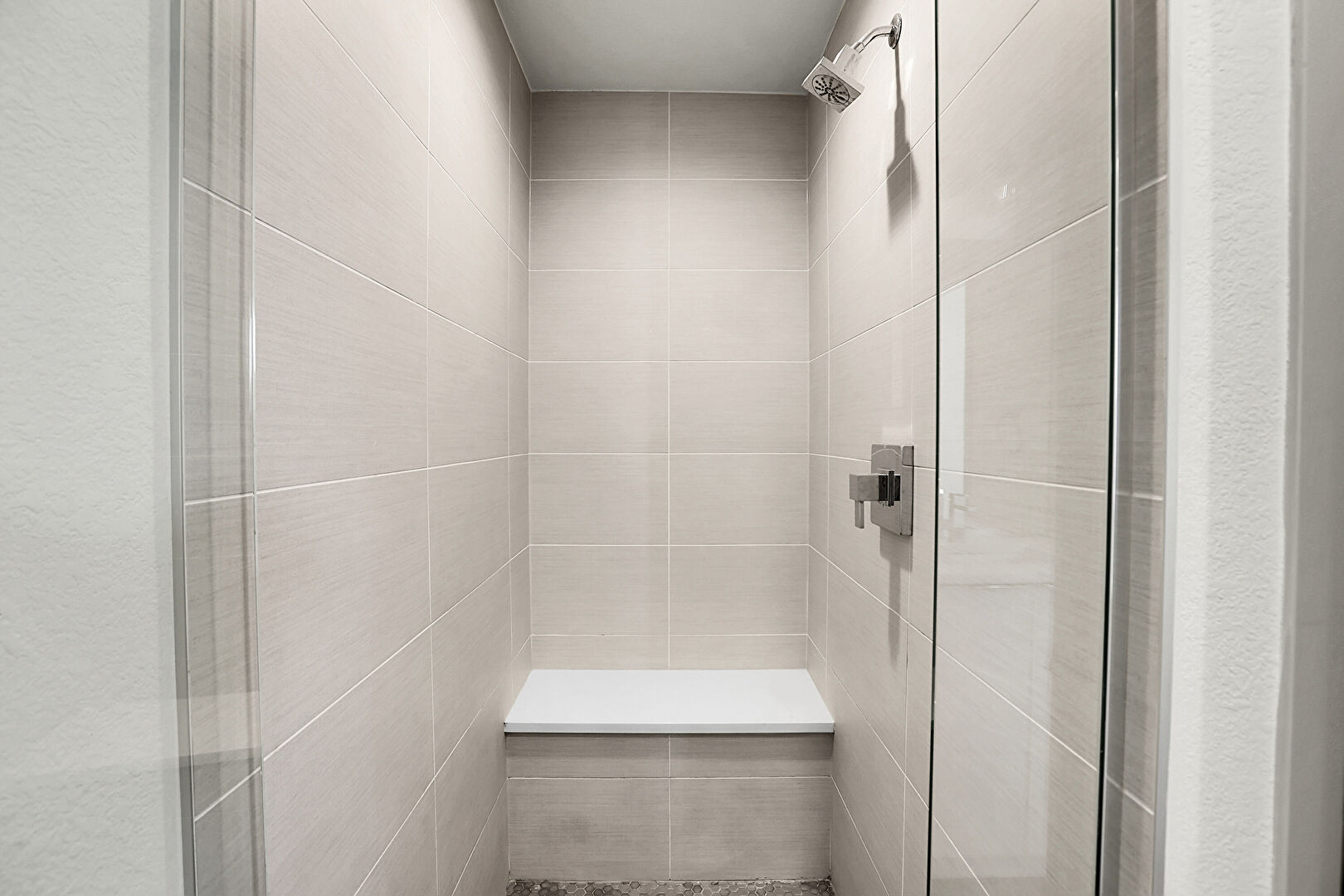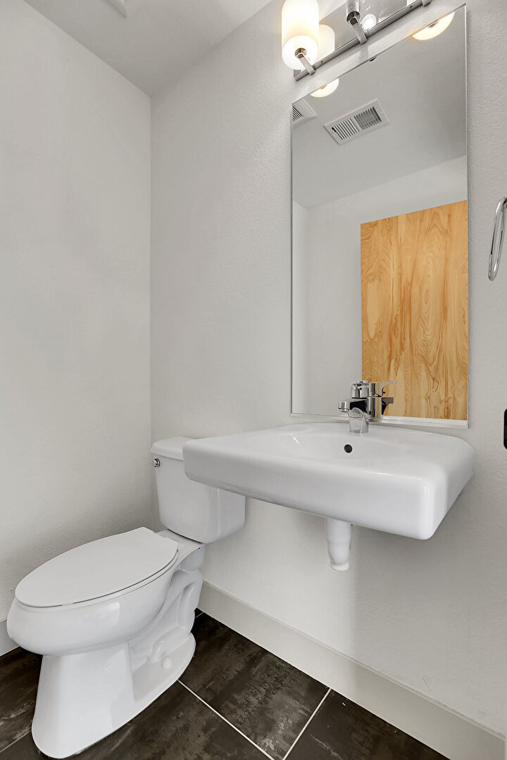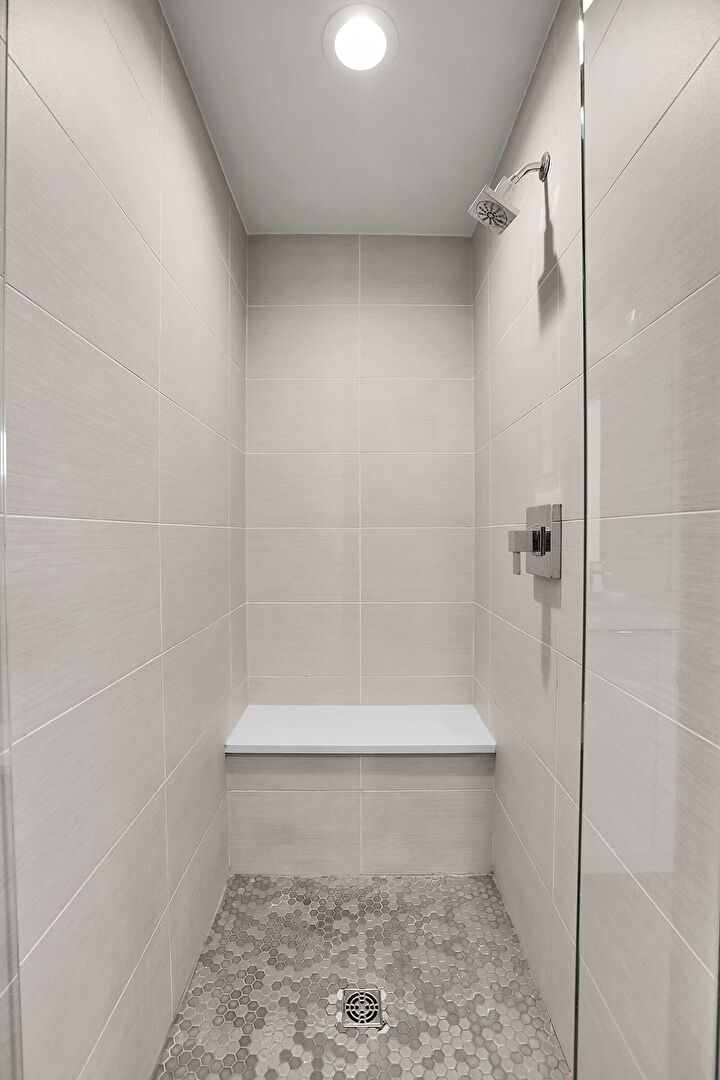 Baseboards Wall, Combined Bath Shower, Double Vanity, Drywall, Full Bathroom, Half Bathroom, Natural Light, Tile Floor, Vanity, Vent, Wood Finish Floor, Baseboards Wall, Full Bathroom, Half Bathroom, Recessed Lighting