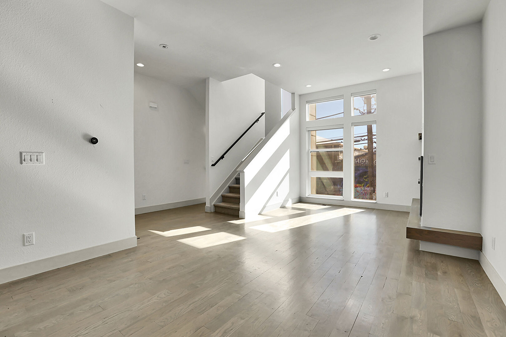 Baseboards Wall, Built In Shelves, Drywall, Fireplace, High Ceiling, Natural Light, Recessed Lighting, Stairs, Vent, Wood Finish Floor, Baseboards Wall, Built In Shelves, Fireplace, Stairs