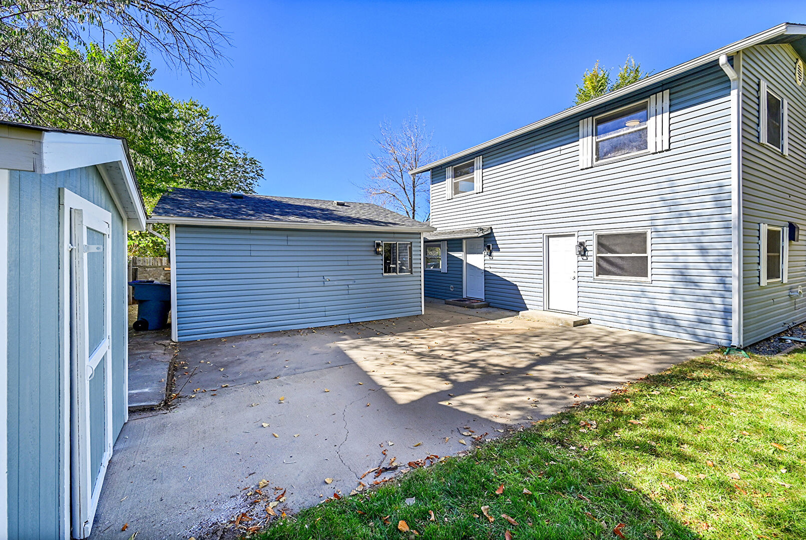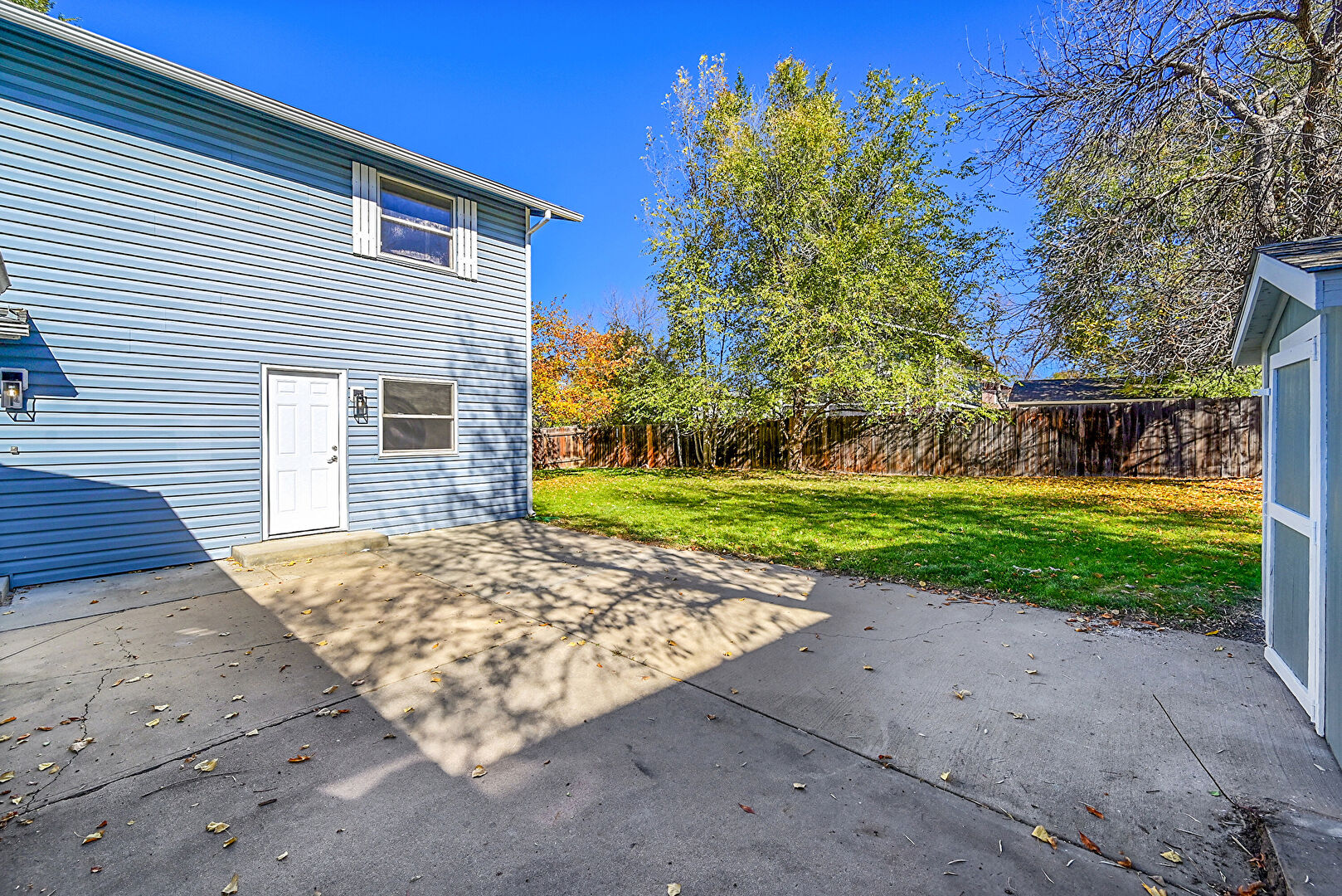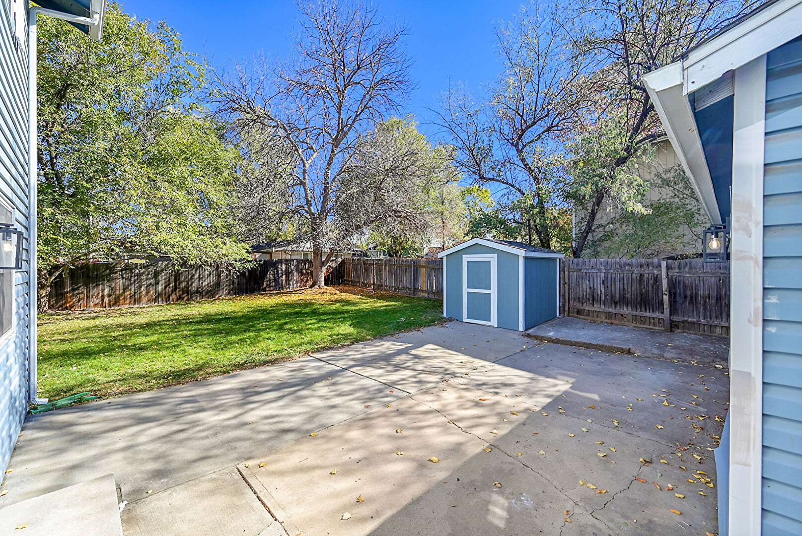 Downspout, Fence, Horizontal Siding, Lawn, Outdoor Structure, Patio, Shed, Gutters, Outdoor Structure