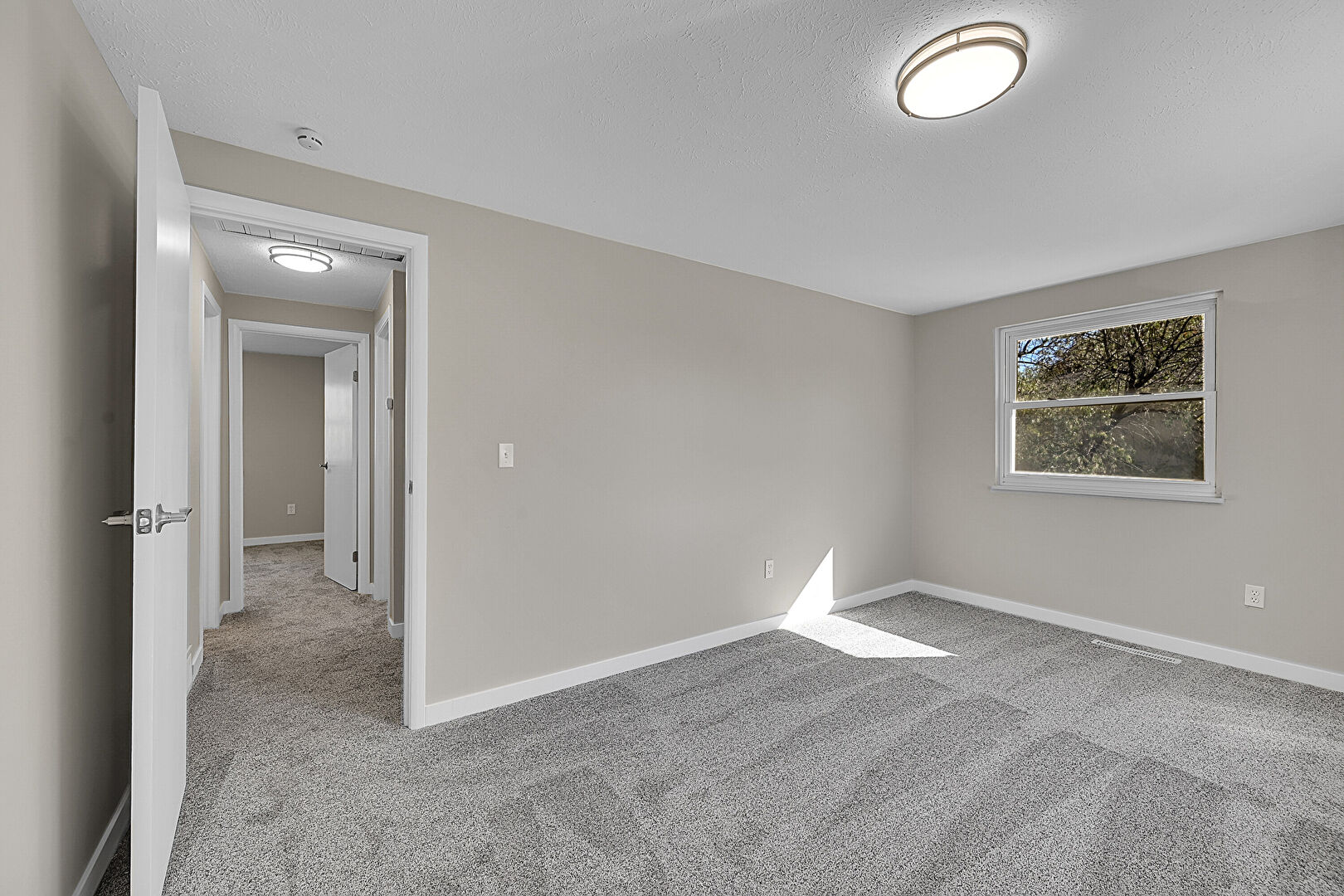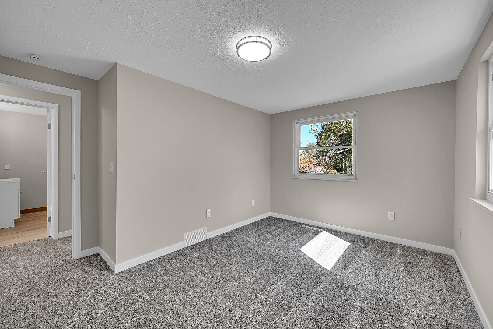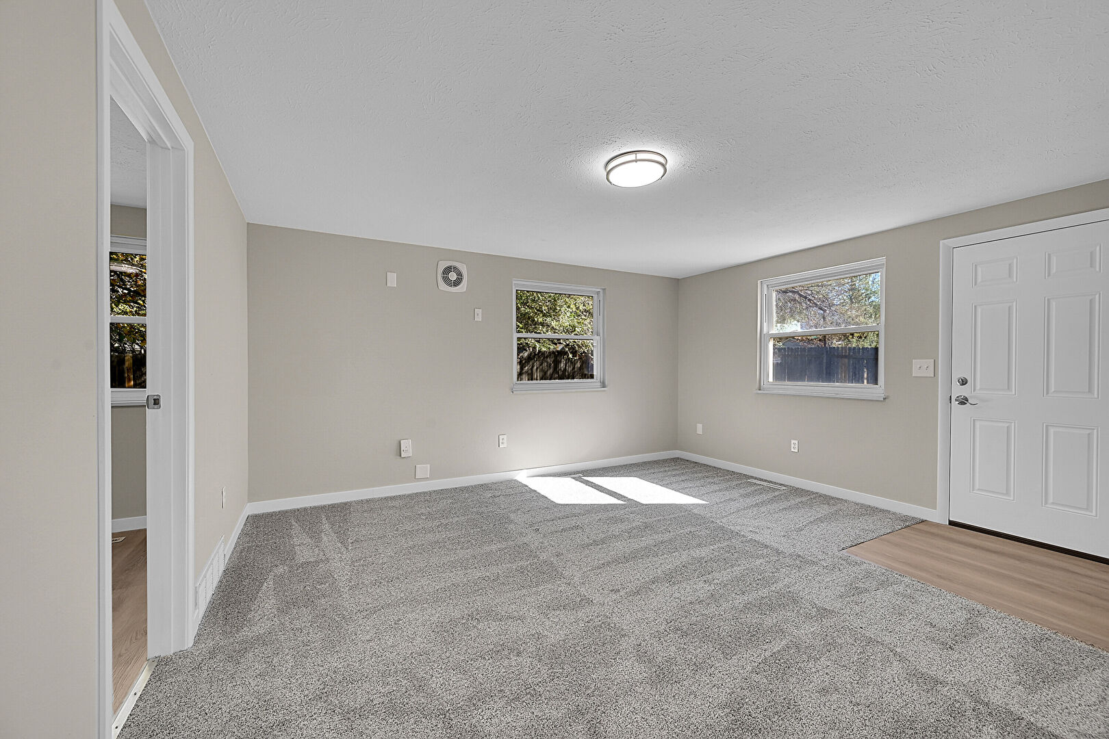 Baseboards Wall, Carpet, Drywall, Natural Light, Smoke Carbon Monoxide Detector, Textured Ceiling, Vent, Baseboards Wall, Natural Light, Vent