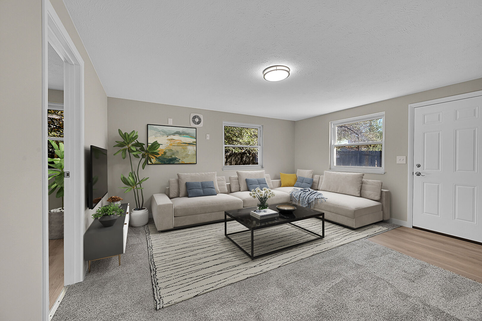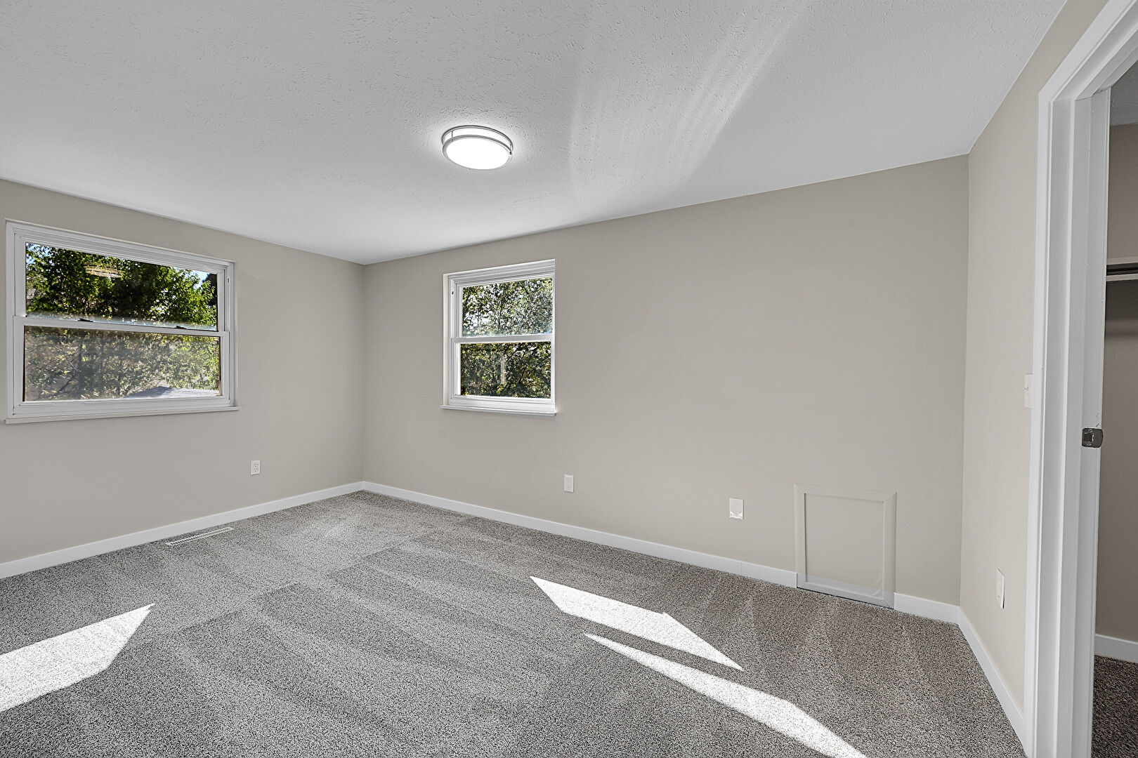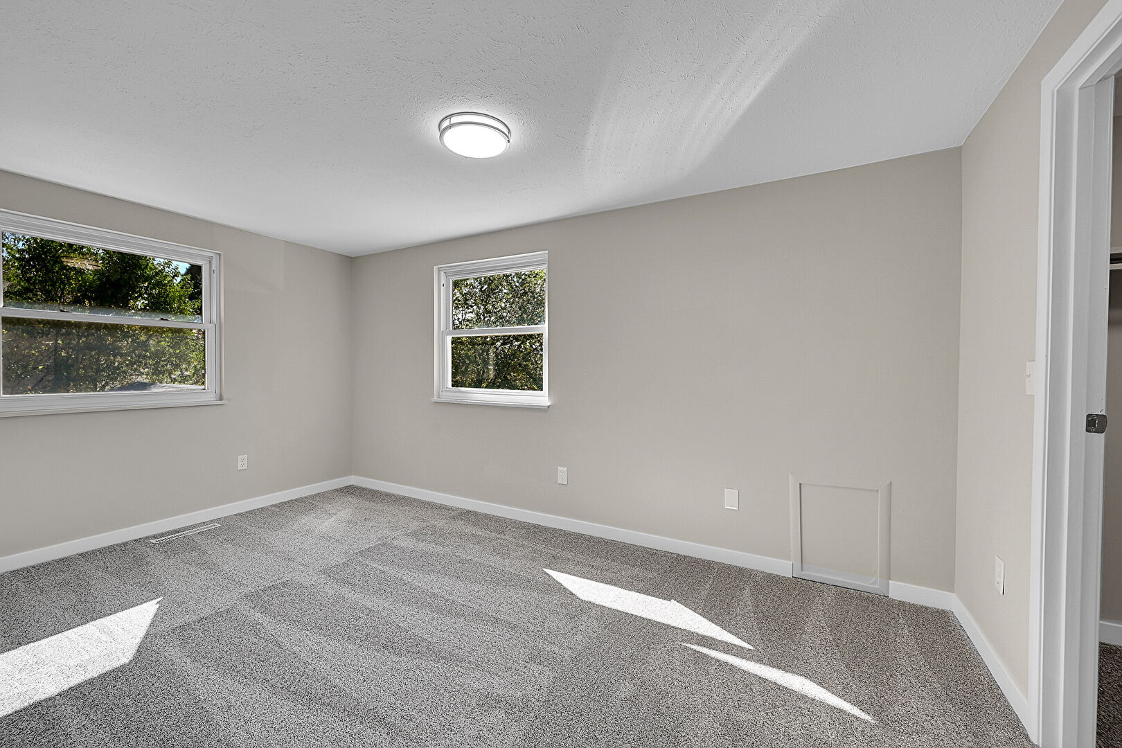 Baseboards Wall, Carpet, Drywall, Natural Light, Smoke Carbon Monoxide Detector, Textured Ceiling, Vent, Baseboards Wall, Natural Light, Vent