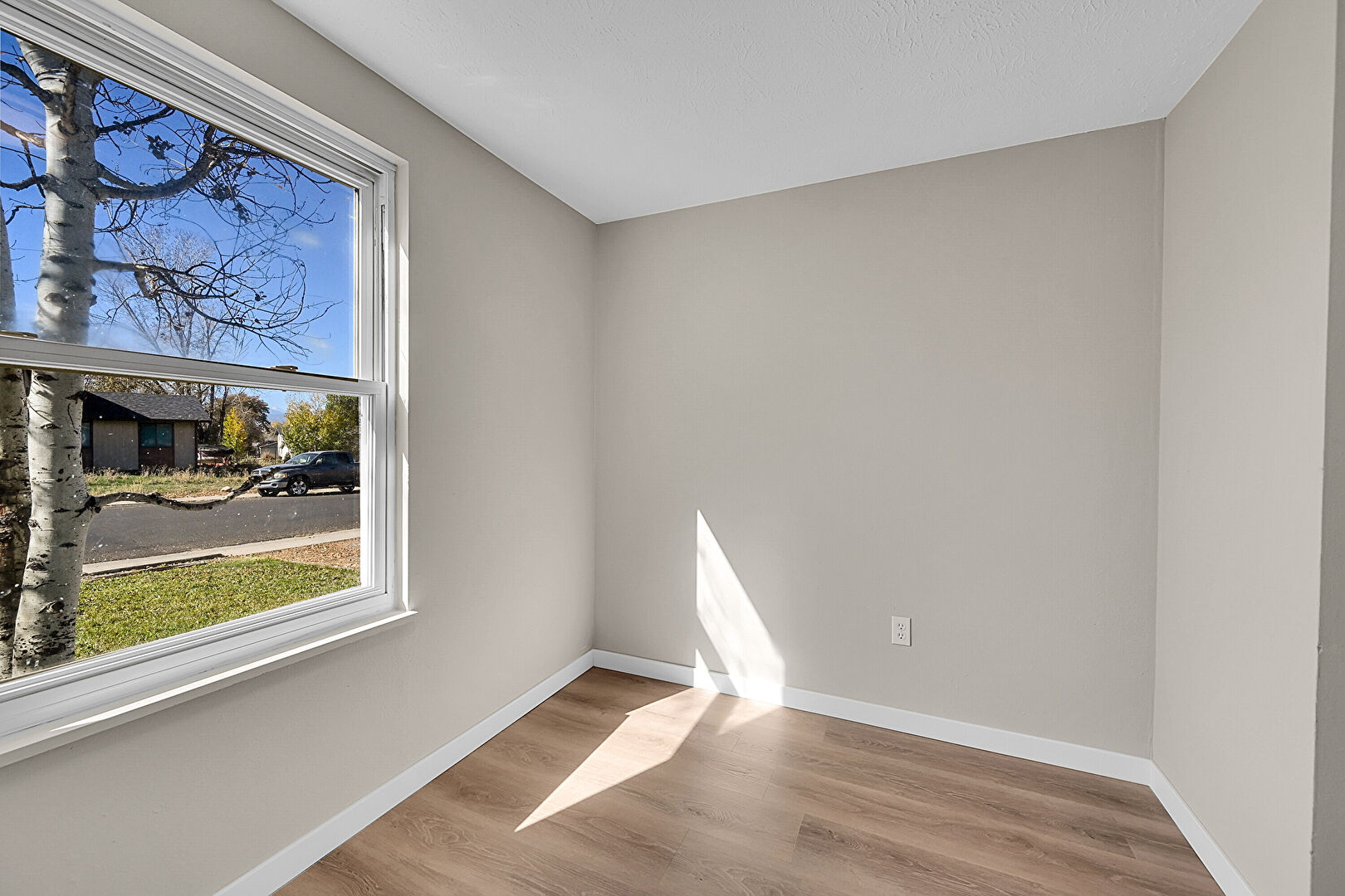 Drywall, Natural Light, Wood Finish Floor, Baseboards Wall
