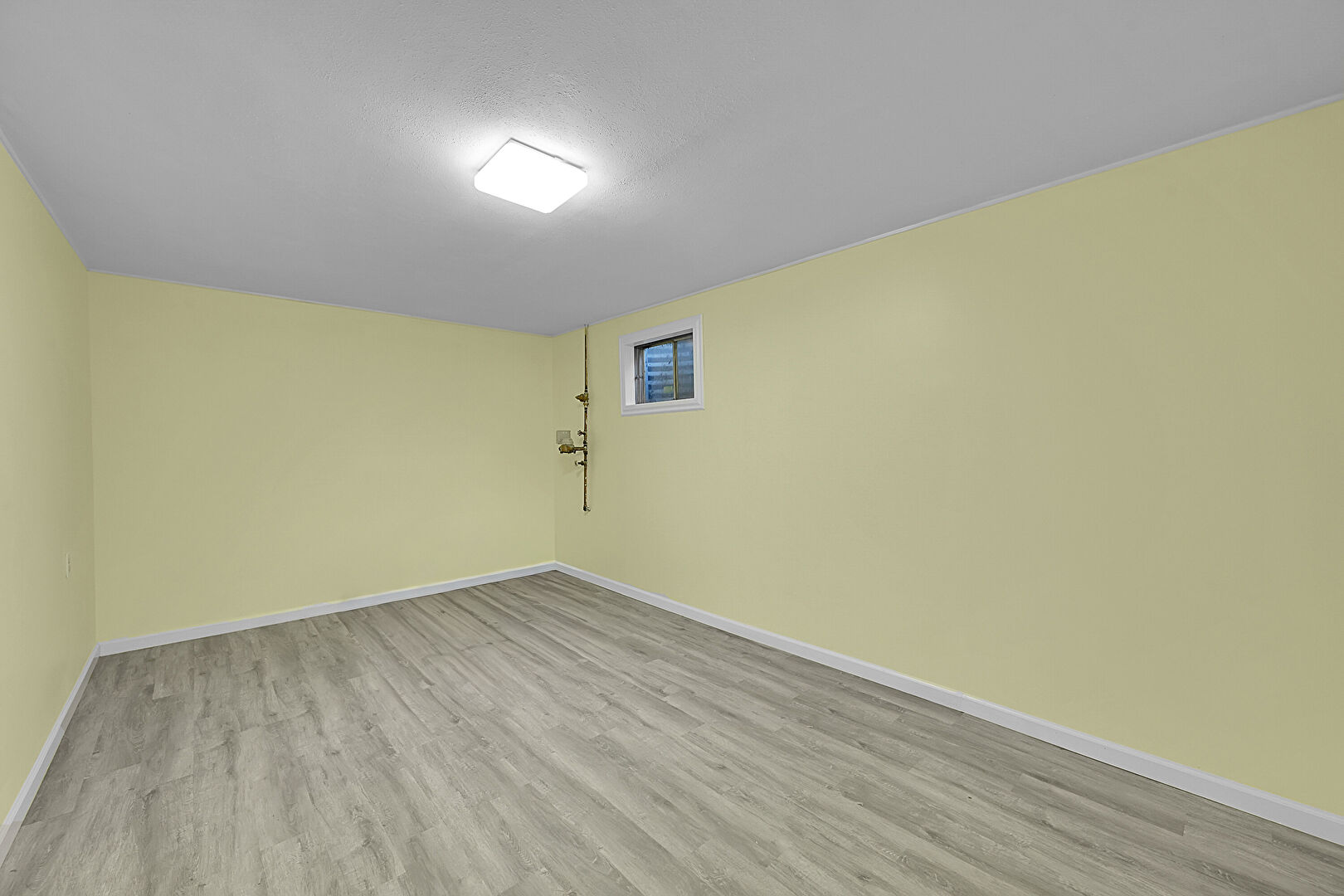 Baseboards Wall, Drywall, Textured Ceiling, Wood Finish Floor, Basement, Wood Finish Floor