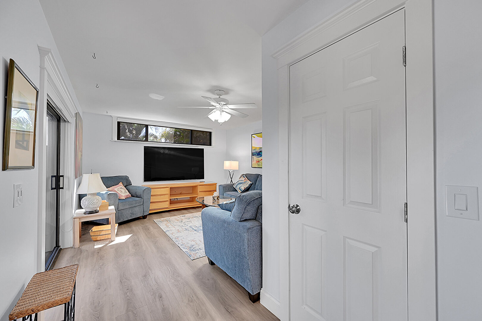 Baseboards Wall, Ceiling Fan, Drywall, Natural Light, Vent, Water View, Waterfront, Wood Finish Floor