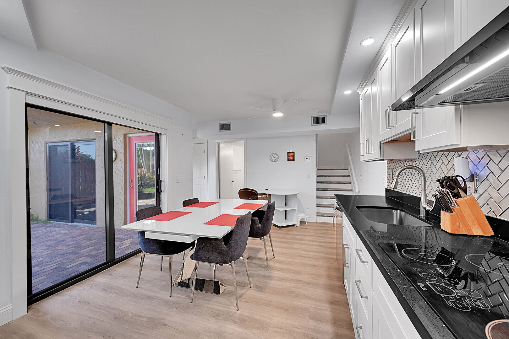 Baseboards Wall, Ceiling Fan, Crown Molding Cabinets, Double Oven, Drywall, L Shaped Kitchen, Natural Light, Recessed Lighting, Shaker Cabinets, Stone Countertops, Vent, Wood Finish Floor, Ceiling Fan, Crown Molding Cabinets, Kitchen Bar, Wood Finish Floor