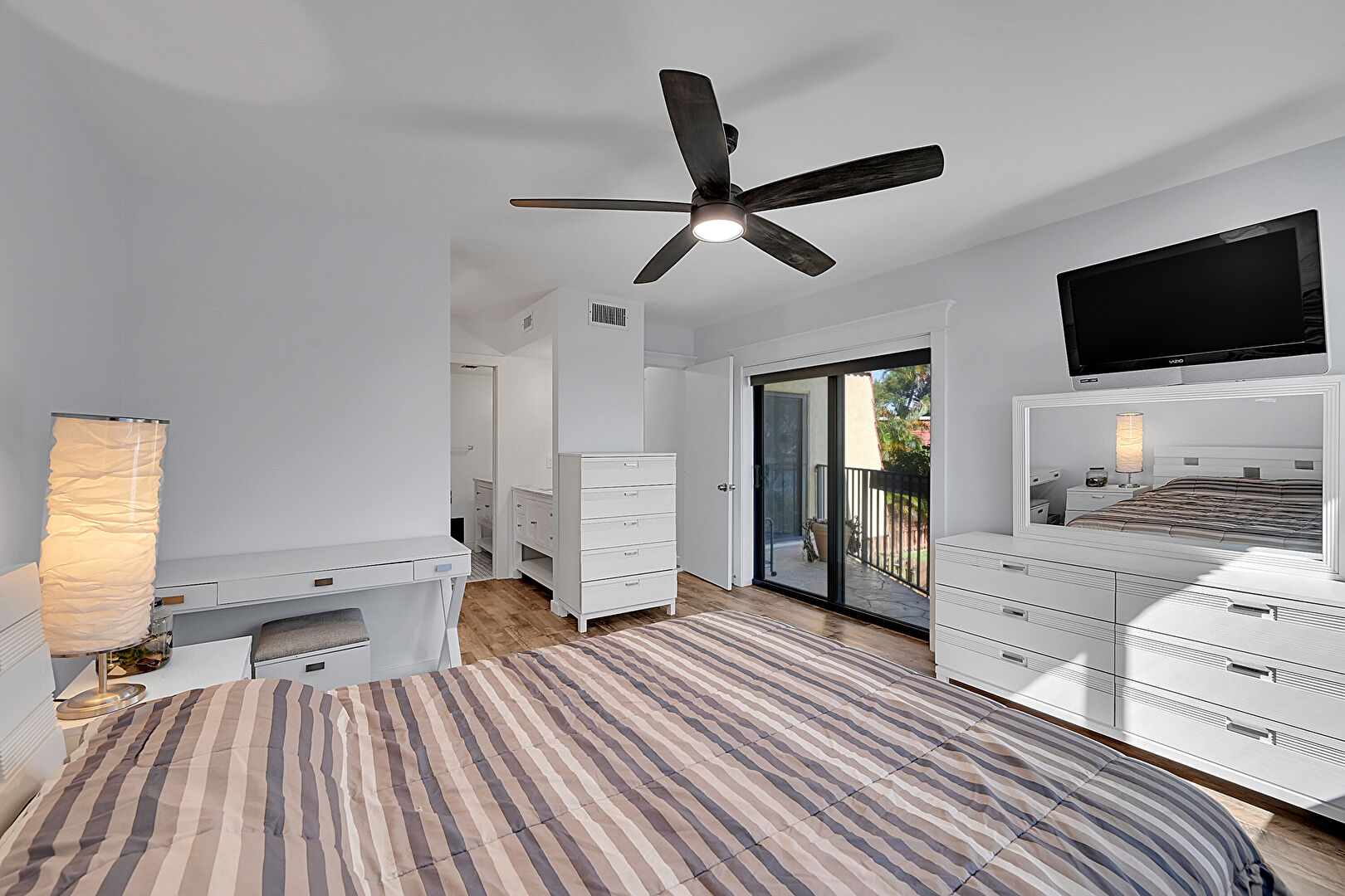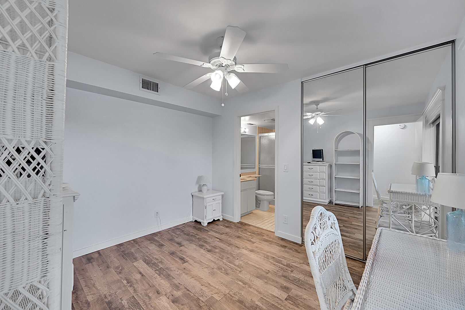 Access To Exterior, Baseboards Wall, Ceiling Fan, Closet, Drywall, Ensuite Bathroom, Natural Light, Vent, Wood Finish Floor, Ceiling Fan, Natural Light