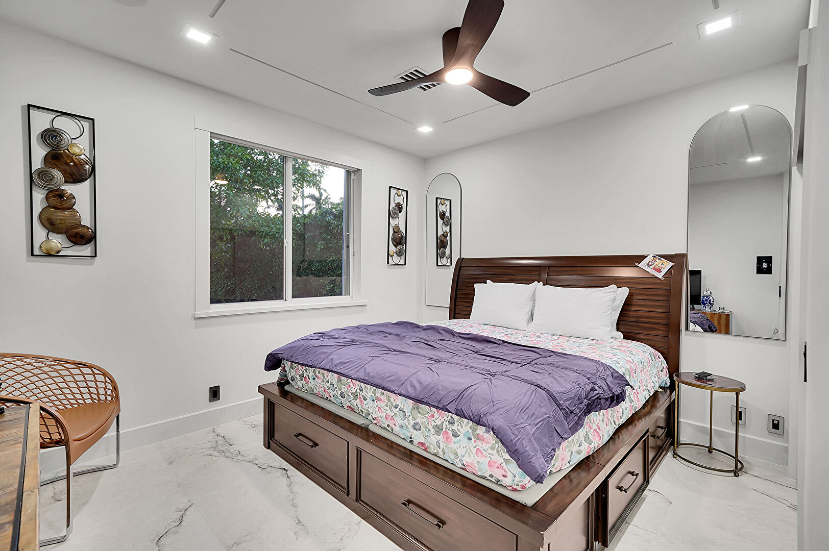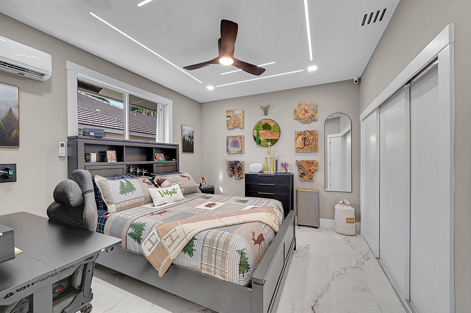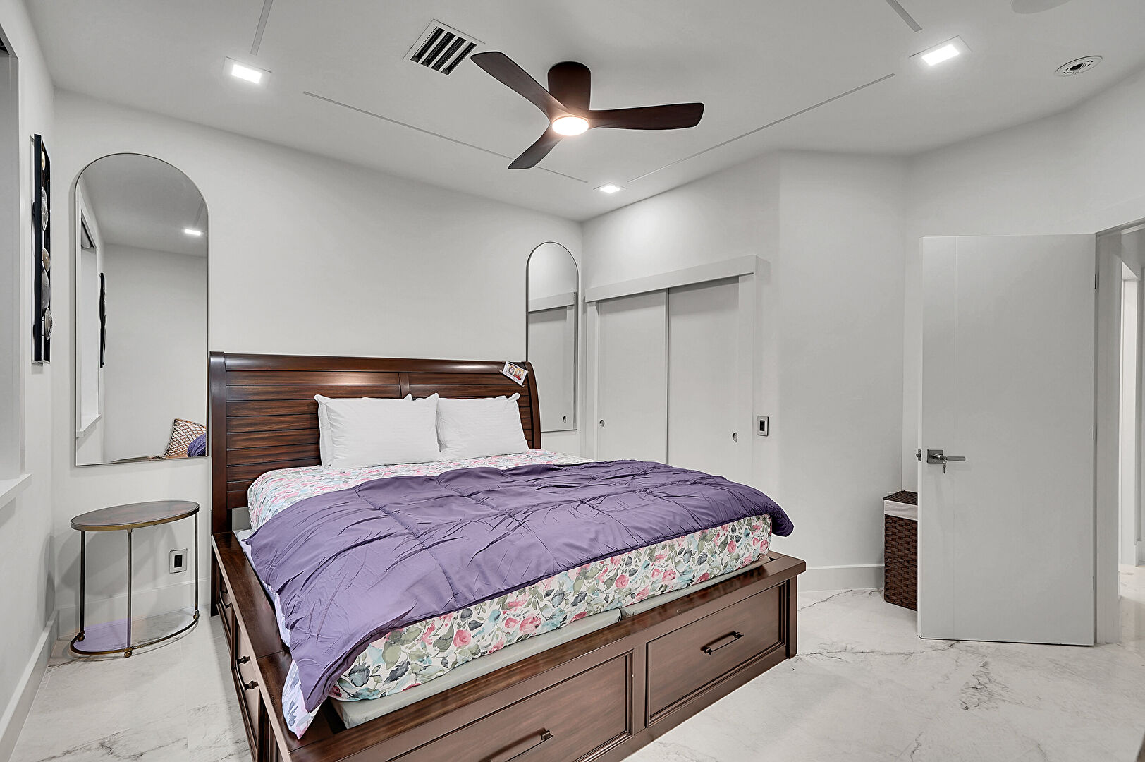 Baseboards Wall, Ceiling Fan, Closet, Drywall, Ensuite Bathroom, Natural Light, Recessed Lighting, Security Camera, Vent, Wall Mounted Ac, Drywall, Marble Finish Floor, Vent, Wall Mounted Ac