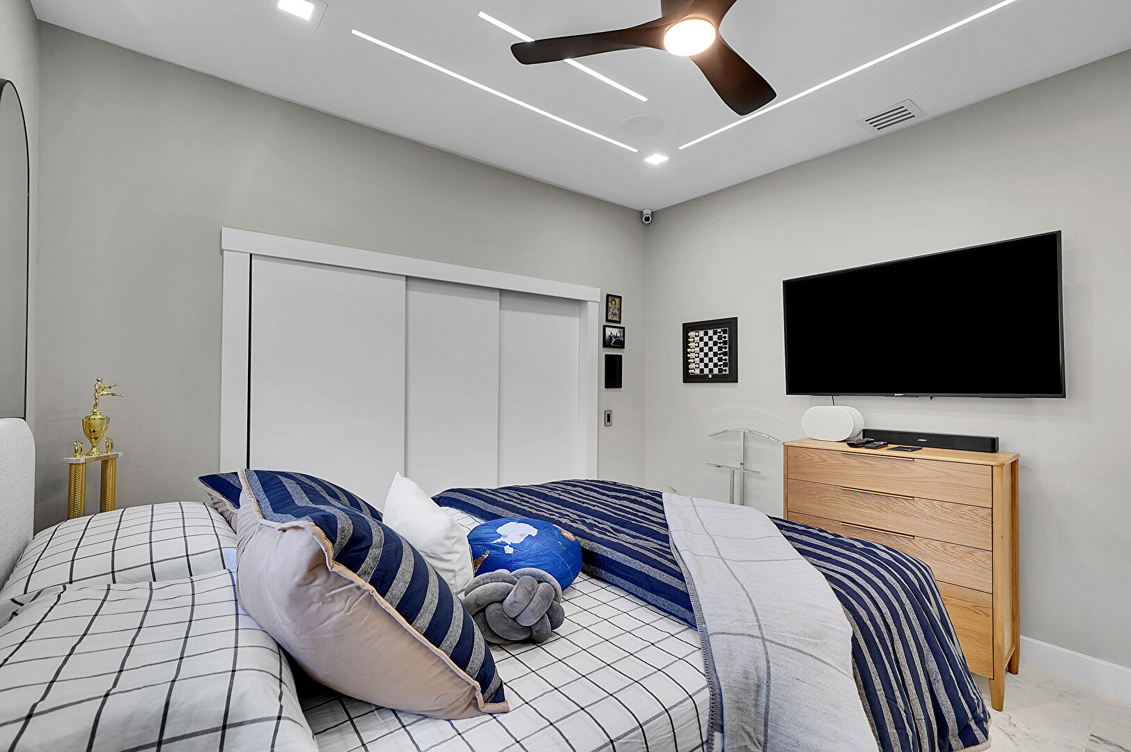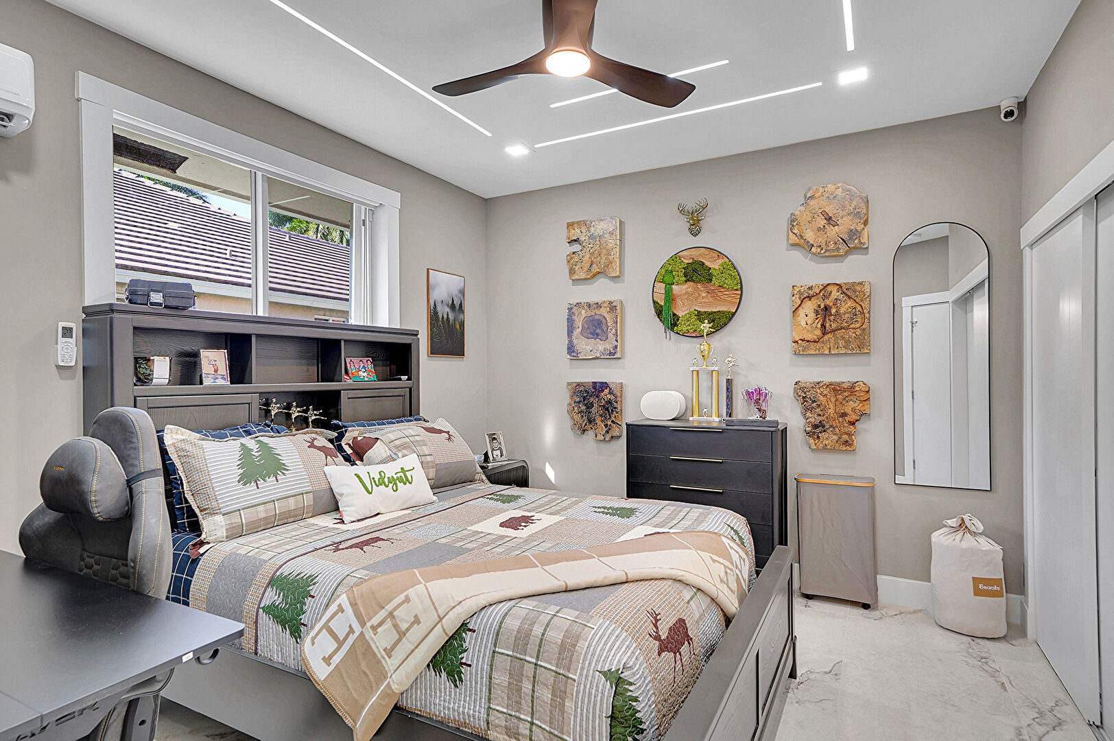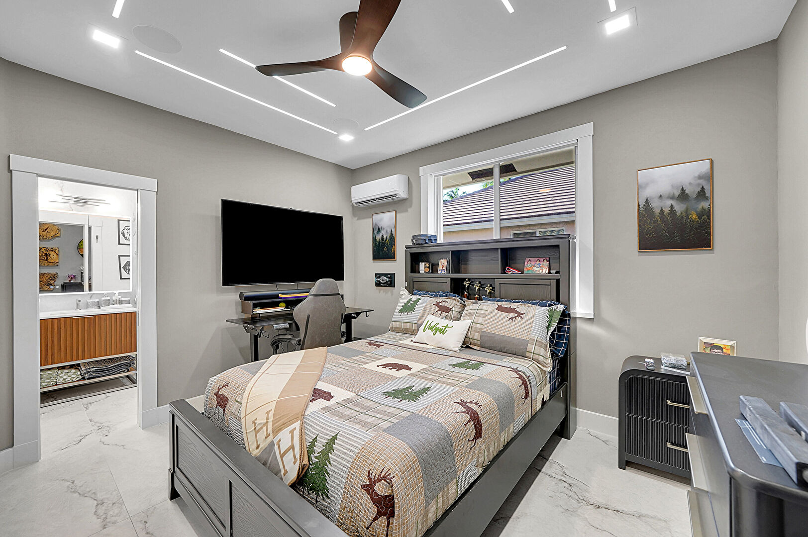 Baseboards Wall, Ceiling Fan, Closet, Drywall, Ensuite Bathroom, Natural Light, Recessed Lighting, Security Camera, Vent, Wall Mounted Ac, Drywall, Marble Finish Floor, Vent, Wall Mounted Ac