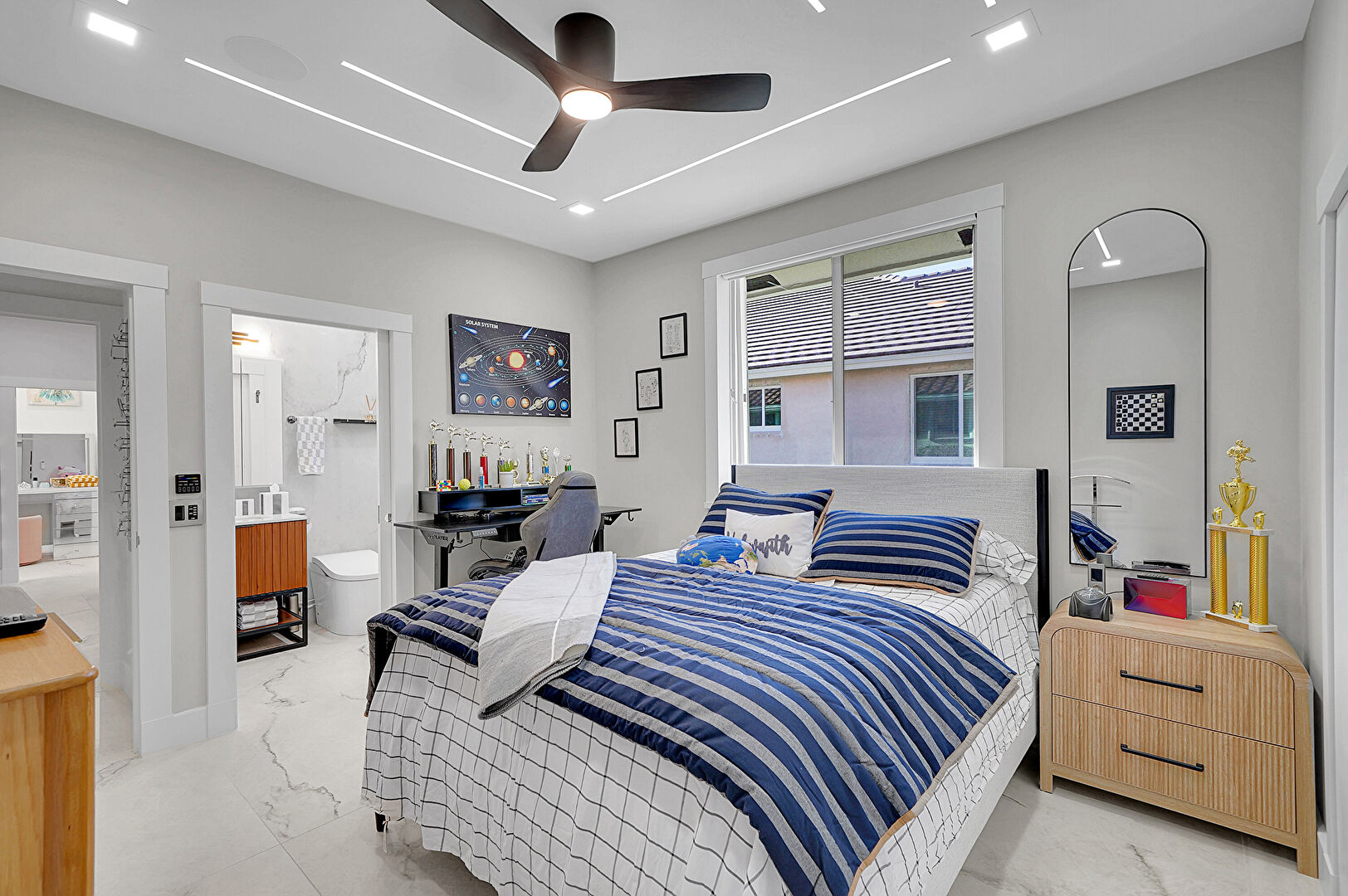 Baseboards Wall, Ceiling Fan, Closet, Drywall, Ensuite Bathroom, Marble Finish Floor, Natural Light, Office Area, Recessed Lighting, Ceiling Fan, Marble Finish Floor, Vent
