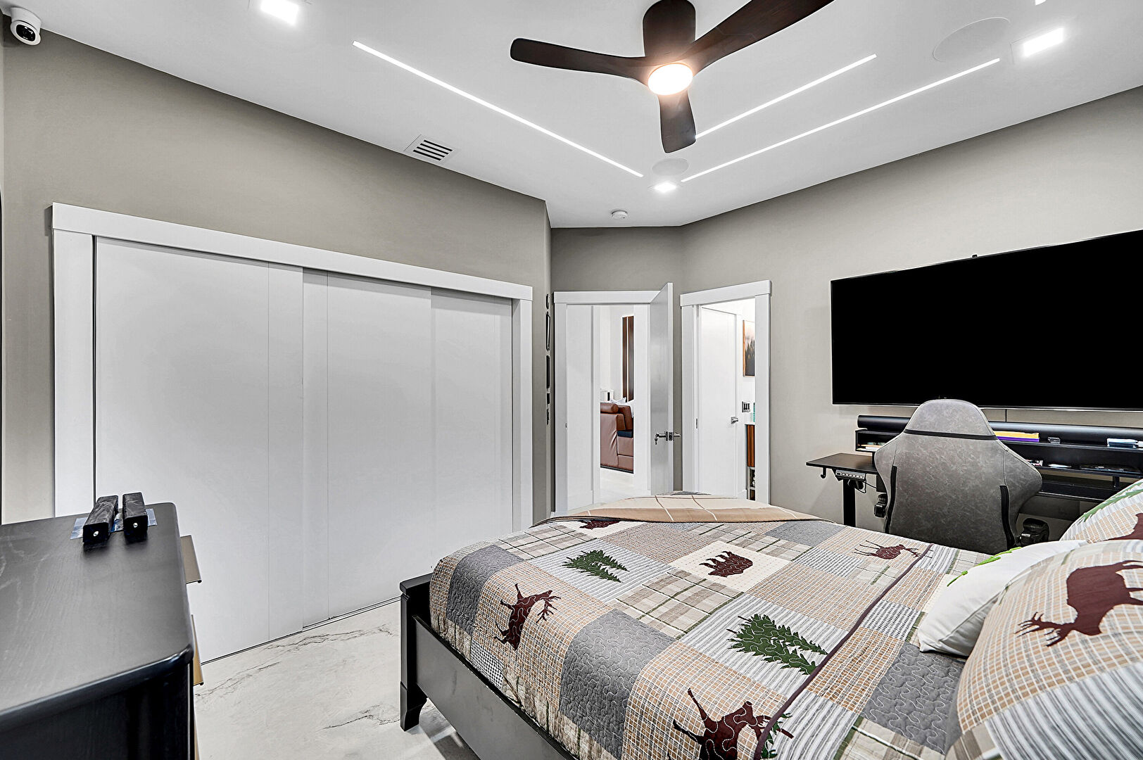 Baseboards Wall, Carpet, Ceiling Fan, Closet, Drywall, Marble Finish Floor, Natural Light, Recessed Lighting, Security Camera, Vent, Baseboards Wall, Ceiling Fan, Drywall