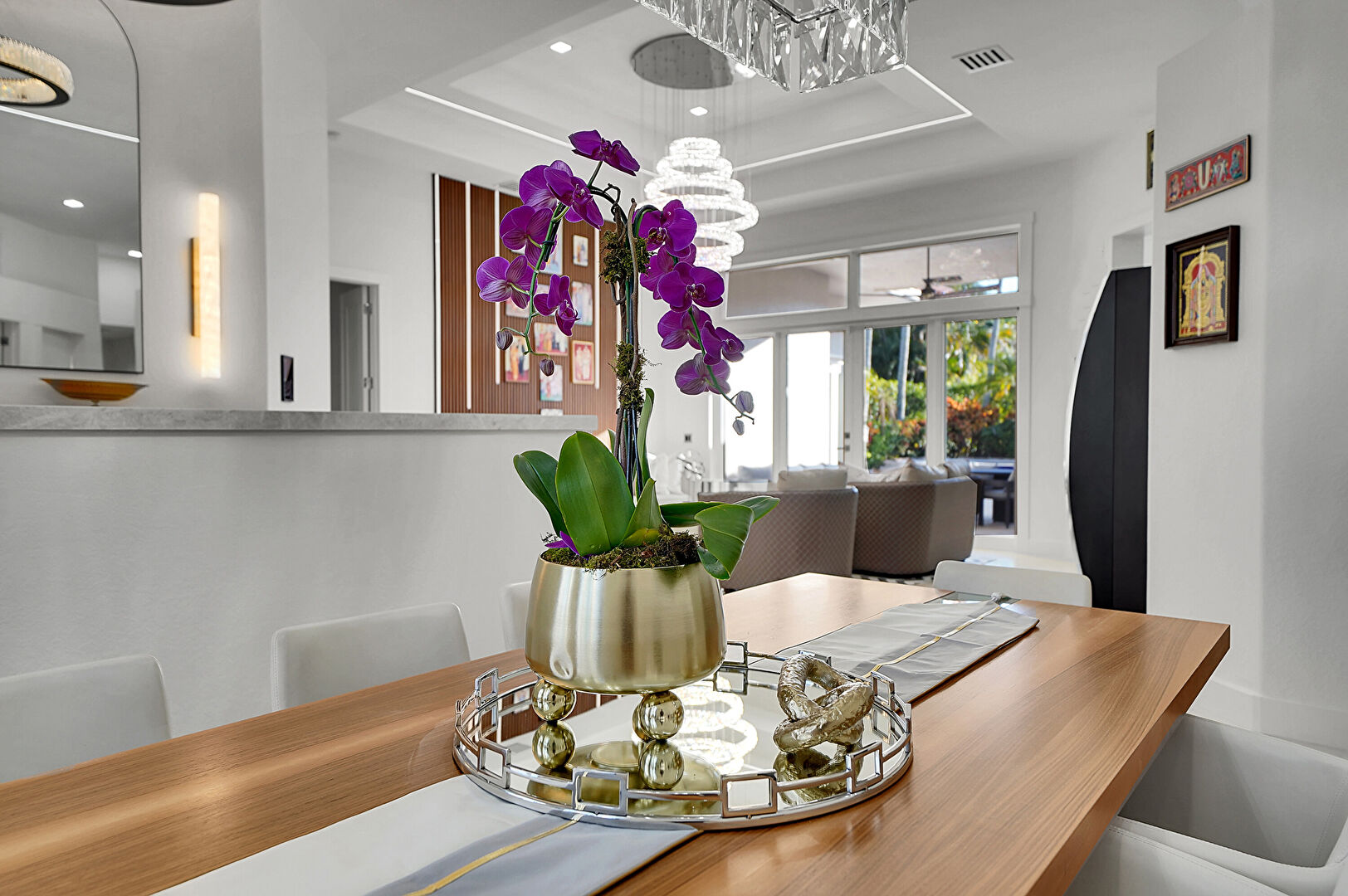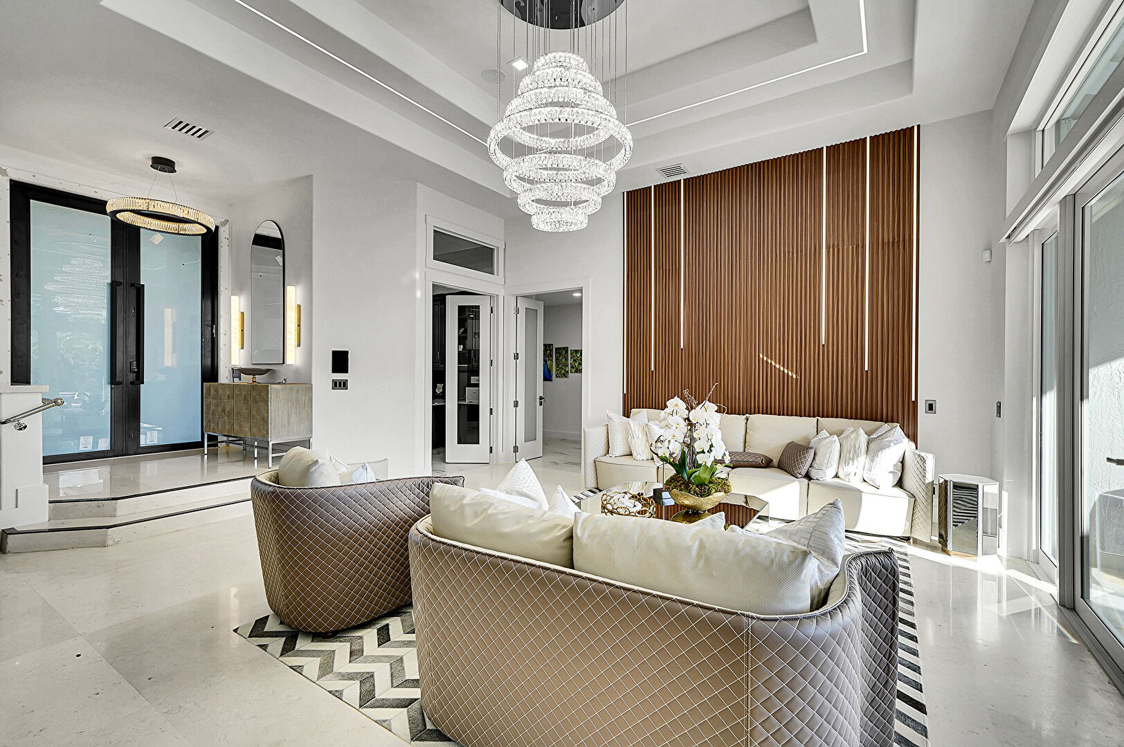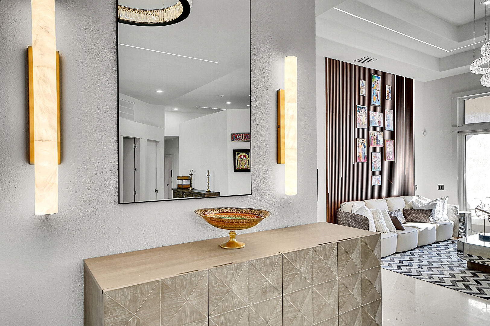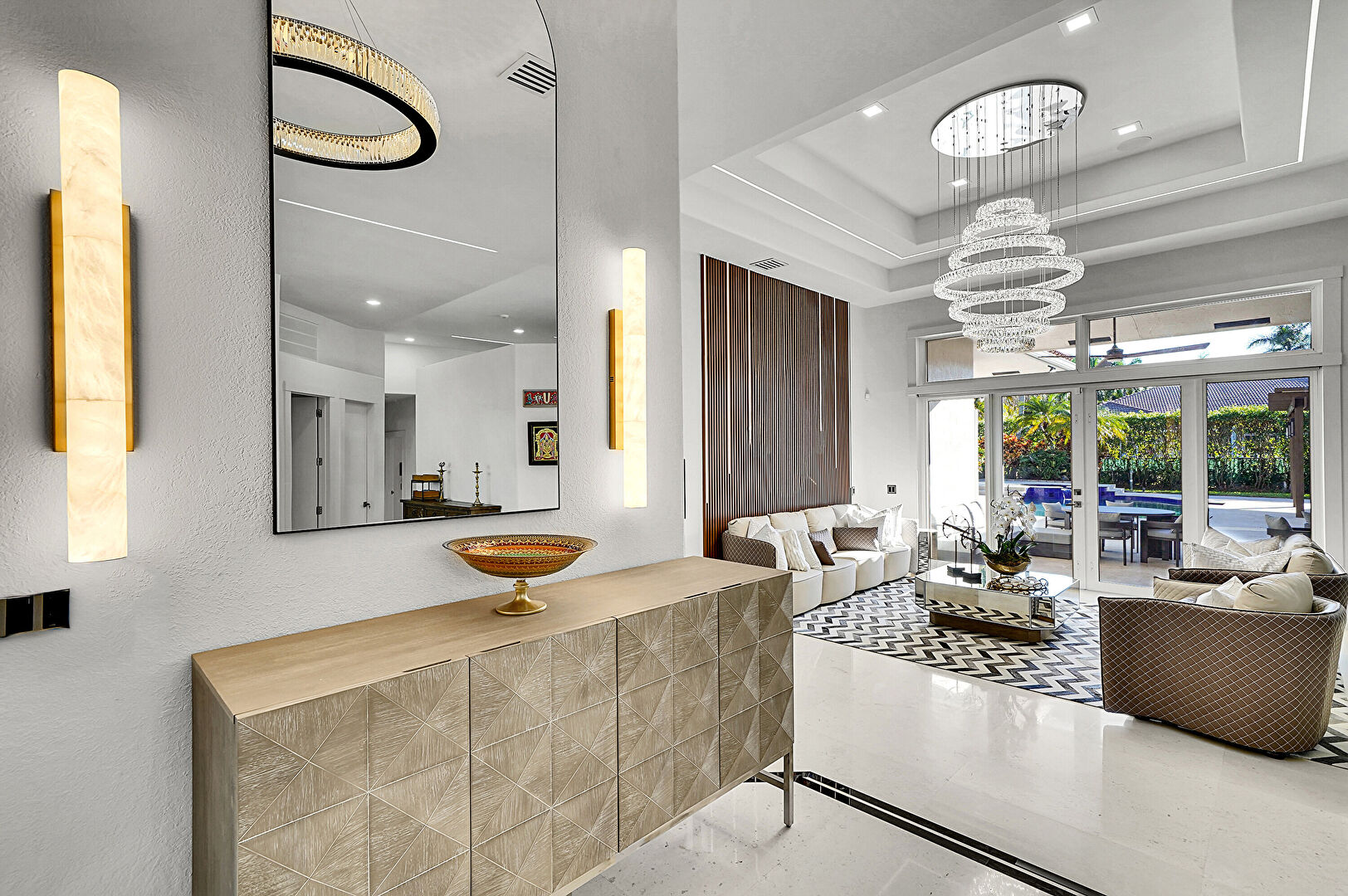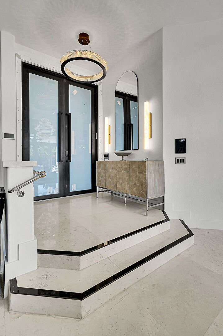 Baseboards Wall, Drywall, French Doors, High Ceiling, Natural Light, Notable Chandelier, Recessed Lighting, Textured Wall, Tile Floor, Tray Ceiling, Vent, Natural Light, Textured Wall