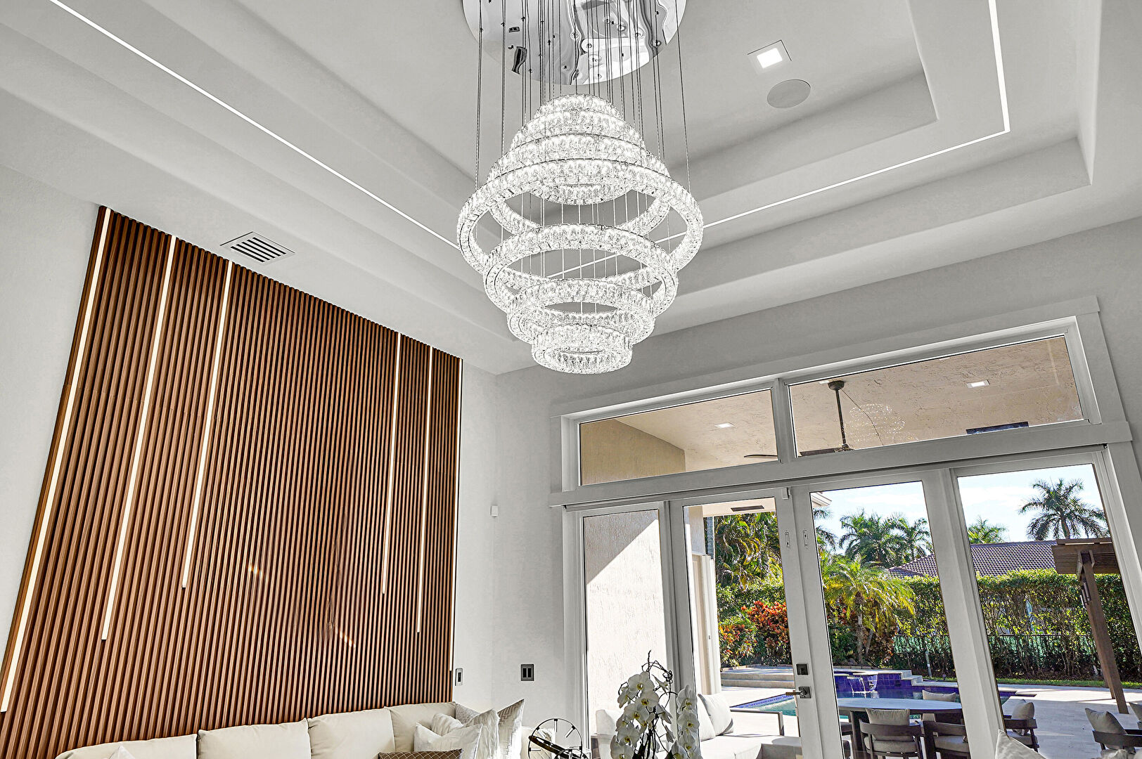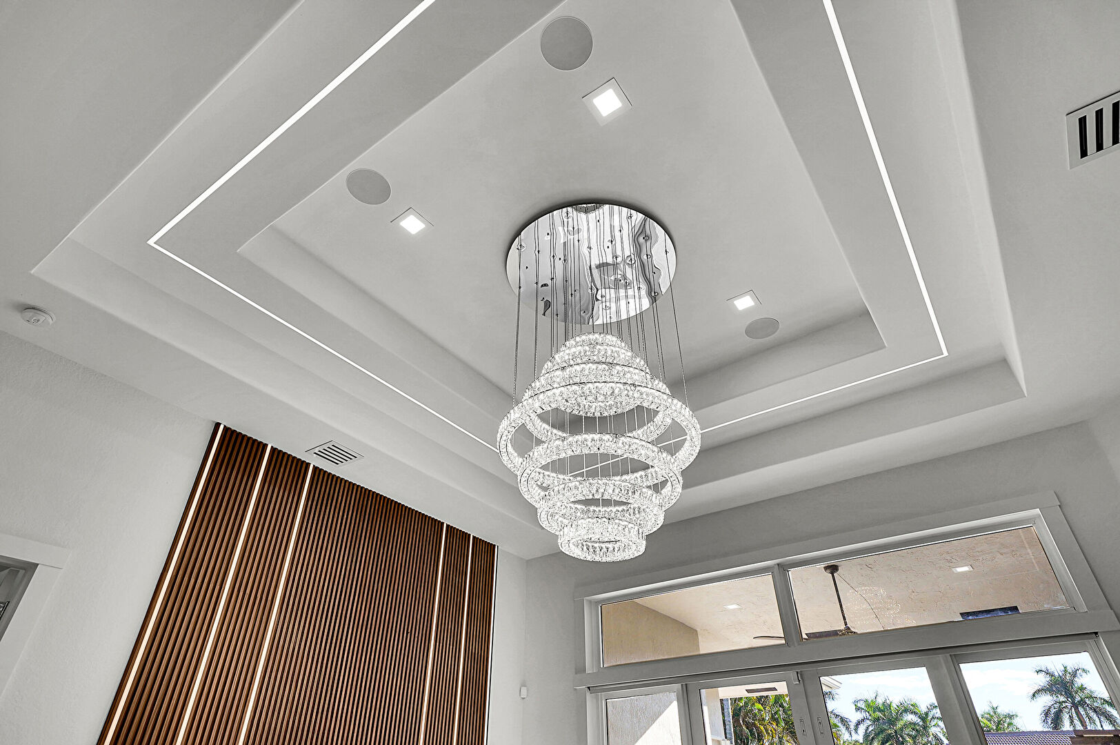 Baseboards Wall, Ceiling Fan, Concrete Floor, Drywall, Natural Light, Notable Chandelier, Recessed Lighting, Tray Ceiling, Vent, Baseboards Wall, Drywall, Notable Chandelier
