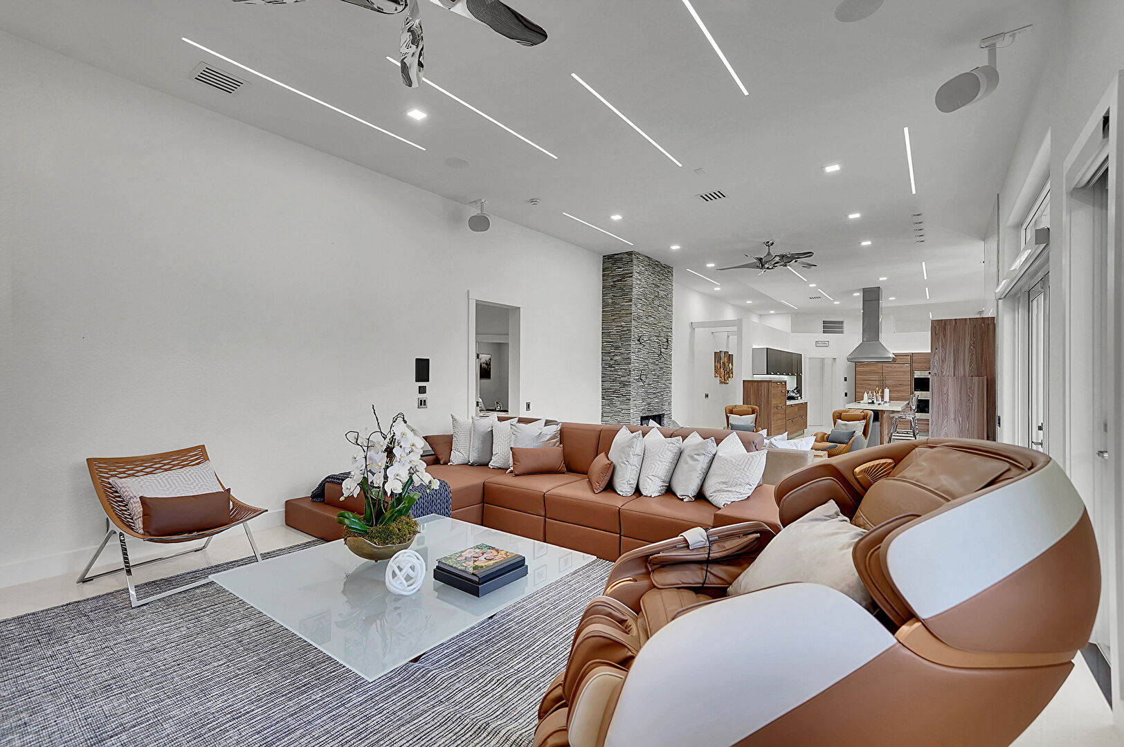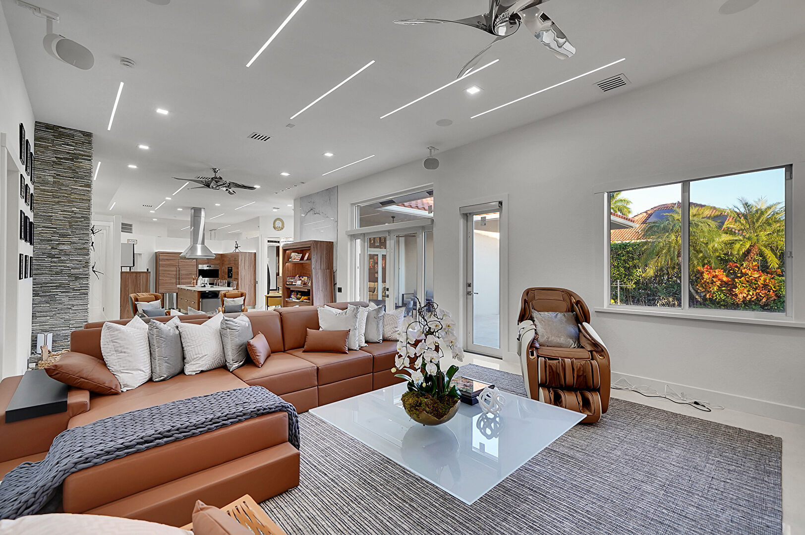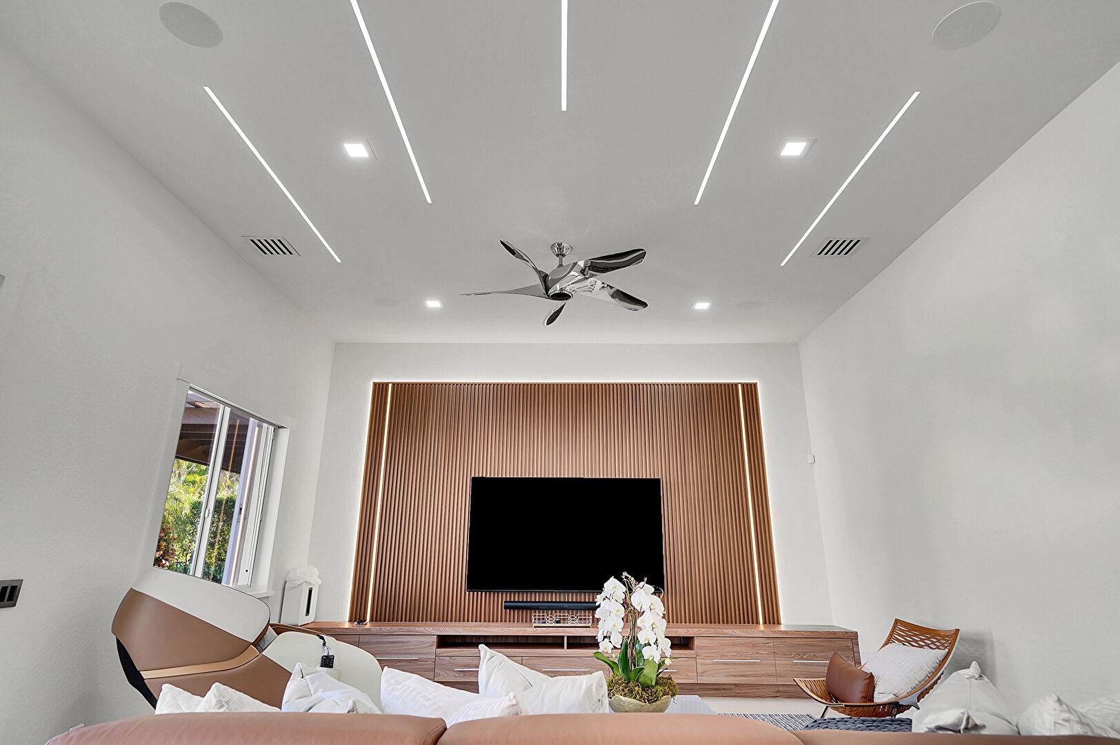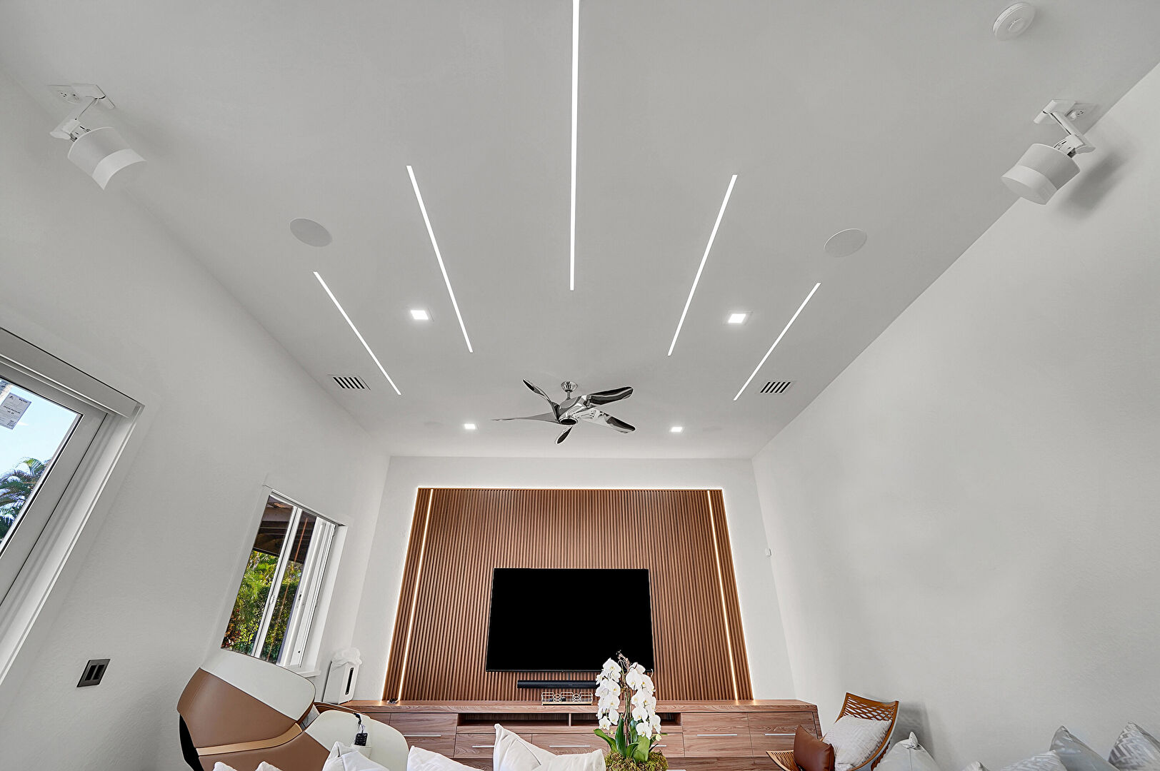 Baseboards Wall, Ceiling Fan, Drywall, High Ceiling, Natural Light, Recessed Lighting, Security Camera, Vent, Baseboards Wall, Ceiling Fan, Drywall, High Ceiling, Natural Light, Vent
