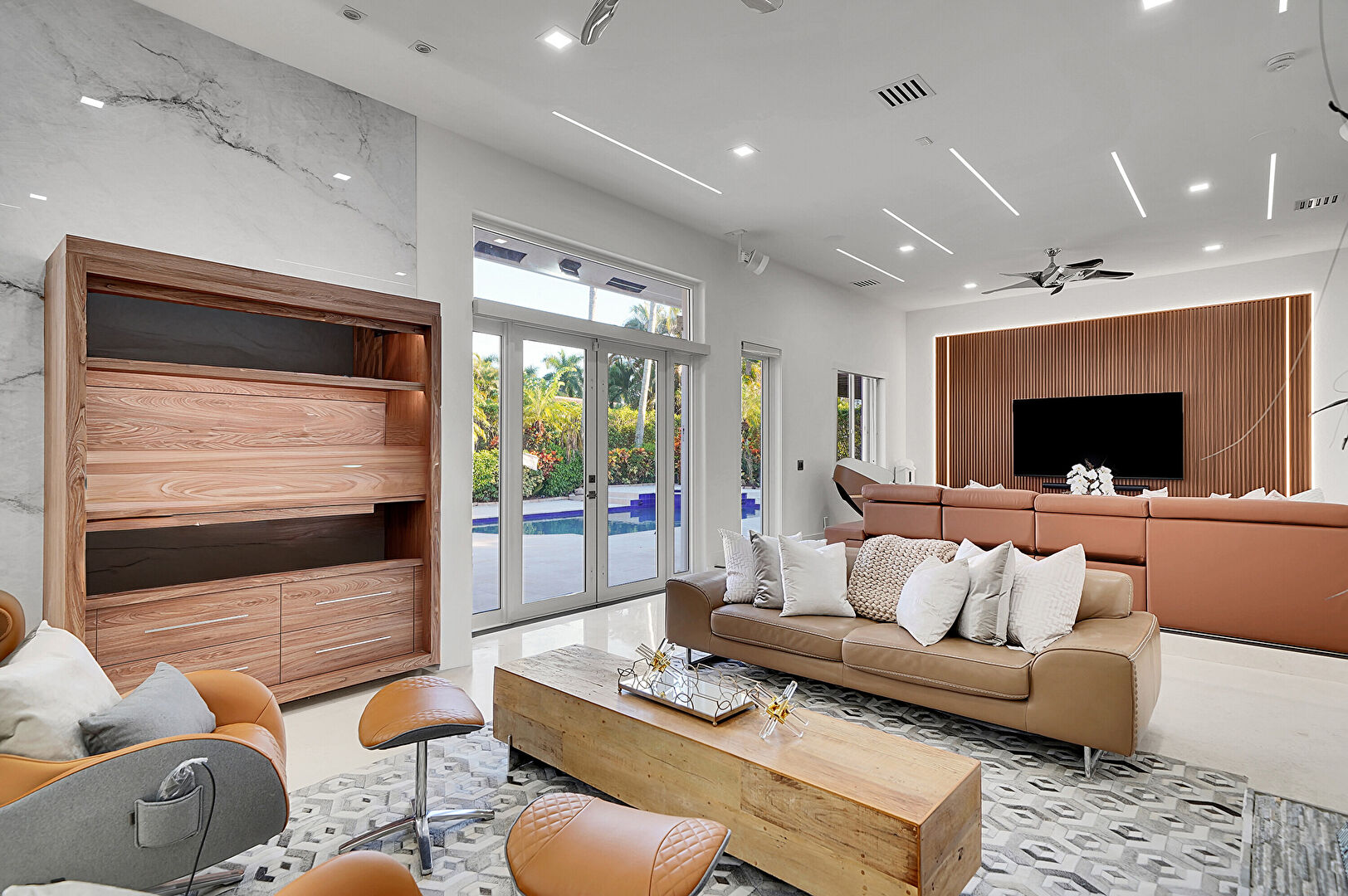 Baseboards Wall, Concrete Floor, Drywall, French Doors, High Ceiling, Natural Light, Notable Chandelier, Recessed Lighting, Smoke Carbon Monoxide Detector, Tray Ceiling, Vaulted Ceiling, Vent, Drywall, French Doors, High Ceiling, Natural Light, Notable Chandelier, Tile Floor, Tray Ceiling, Vent, Wood Wall