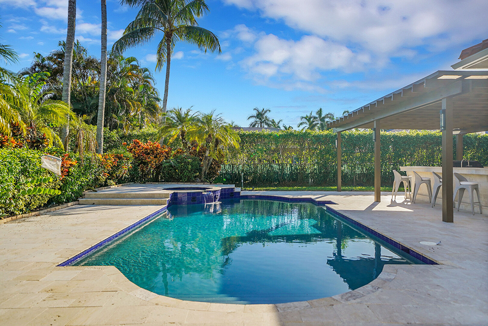Ceiling Fan, Fence, French Doors, Hot Tub, Outdoor Bar, Outdoor Living Space, Patio, Pergola, Pool, Pool Hot Tub Combo, Outdoor Bar, Patio, Pergola