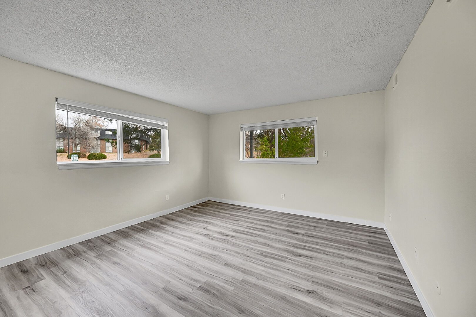 Baseboards Wall, Drywall, Natural Light, Security Camera, Textured Ceiling, Vent, Wood Finish Floor, Drywall, Natural Light, Textured Ceiling