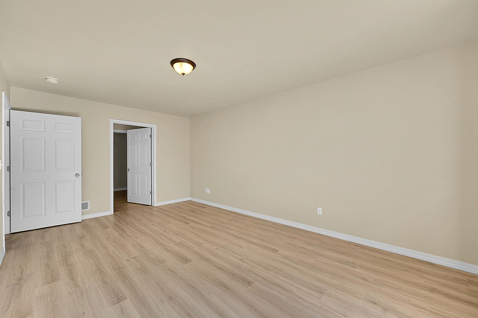 Baseboards Wall, Drywall, Natural Light, Textured Ceiling, Vent, Wood Finish Floor, Natural Light, Smoke Carbon Monoxide Detector, Vent, Wood Finish Floor