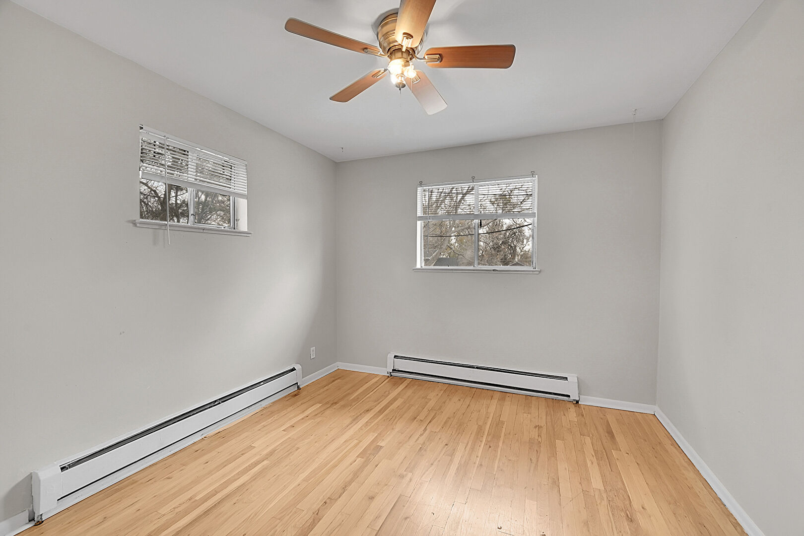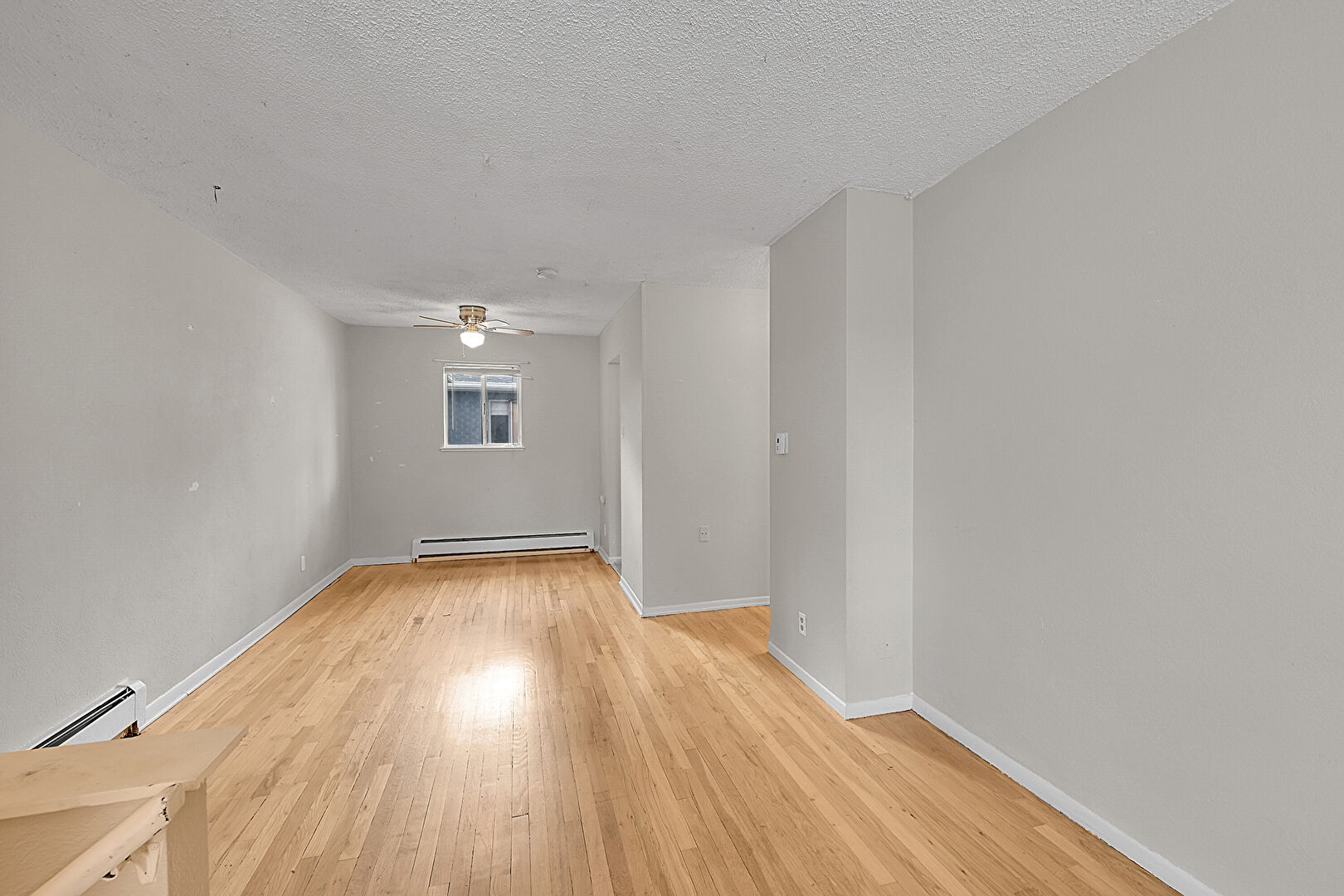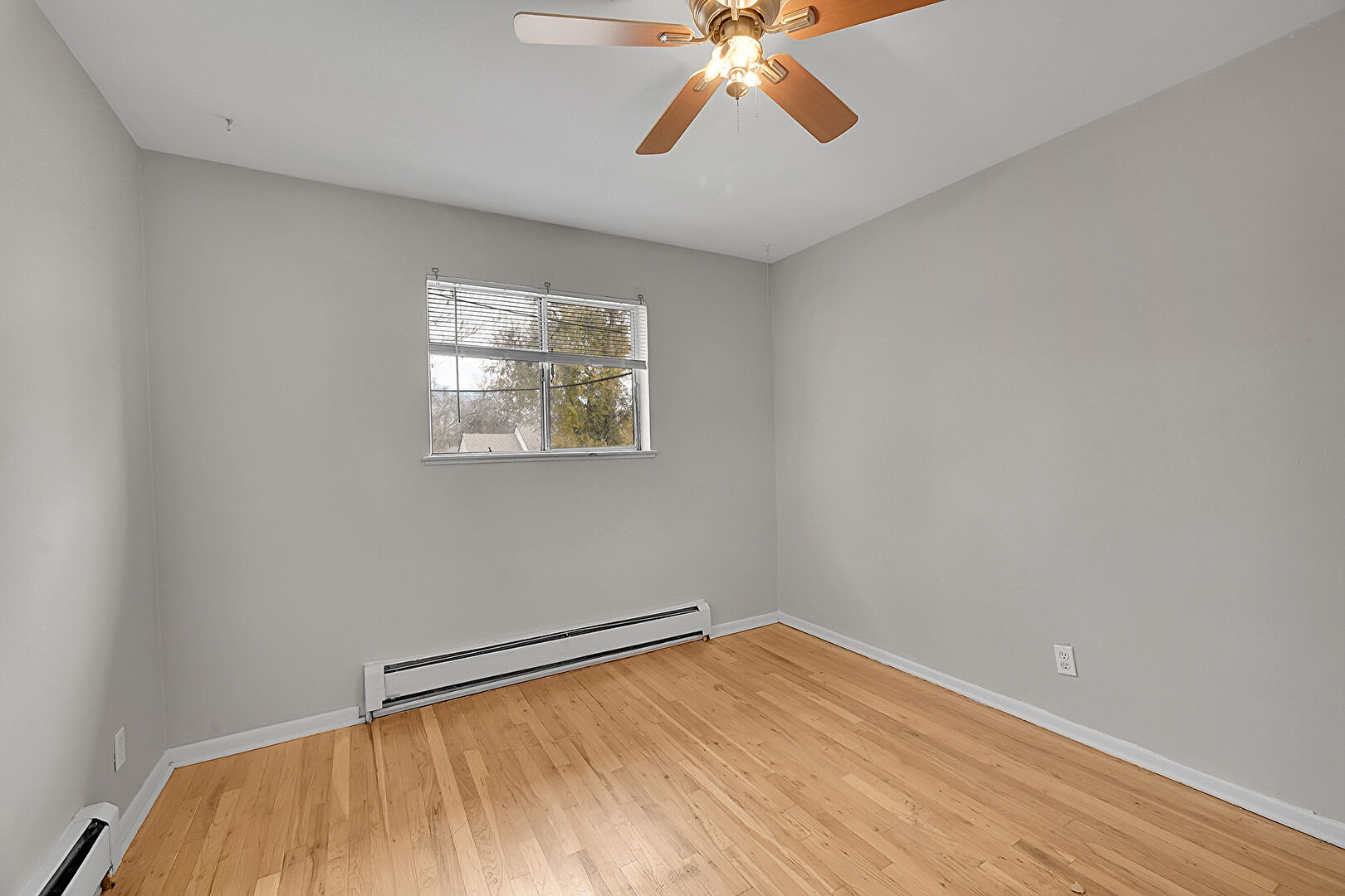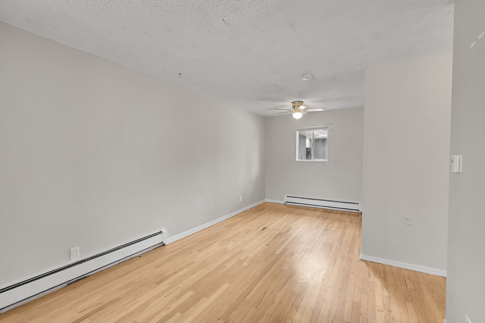 Baseboard Radiator, Baseboards Wall, Ceiling Fan, Drywall, Natural Light, Wood Finish Floor, Ceiling Fan, Drywall, Natural Light
