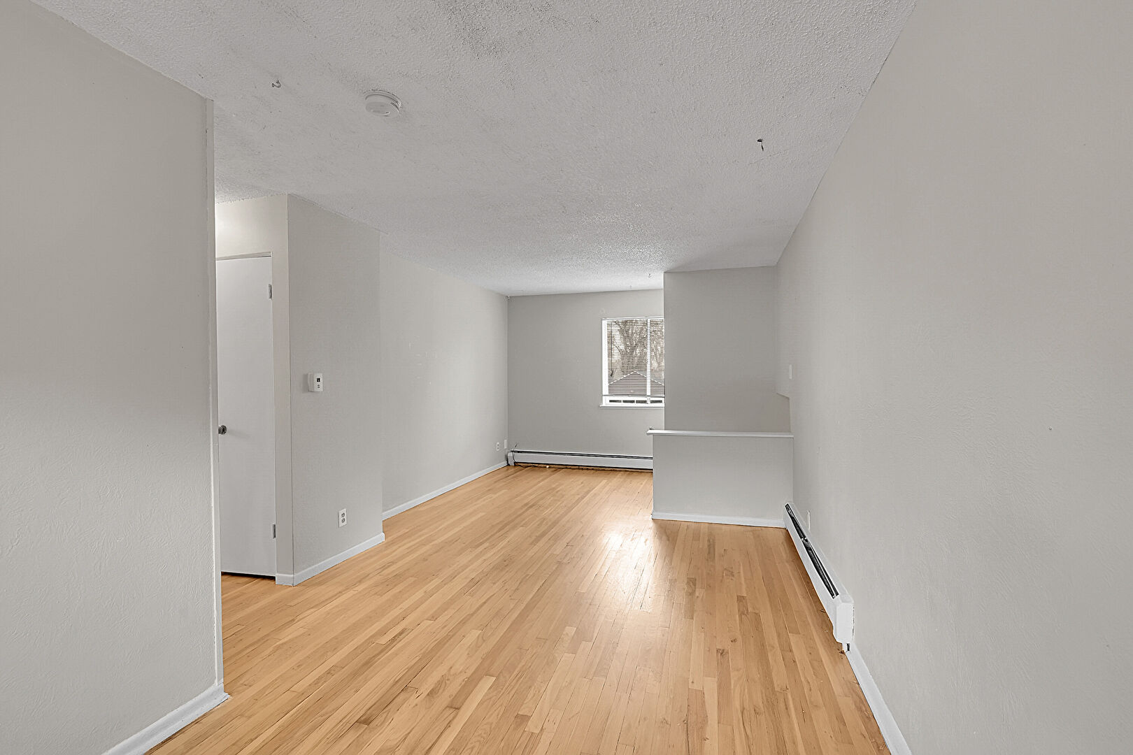 Baseboard Radiator, Baseboards Wall, Ceiling Fan, Drywall, Natural Light, Textured Ceiling, Wood Finish Floor, Baseboard Radiator, Ceiling Fan, Smoke Carbon Monoxide Detector
