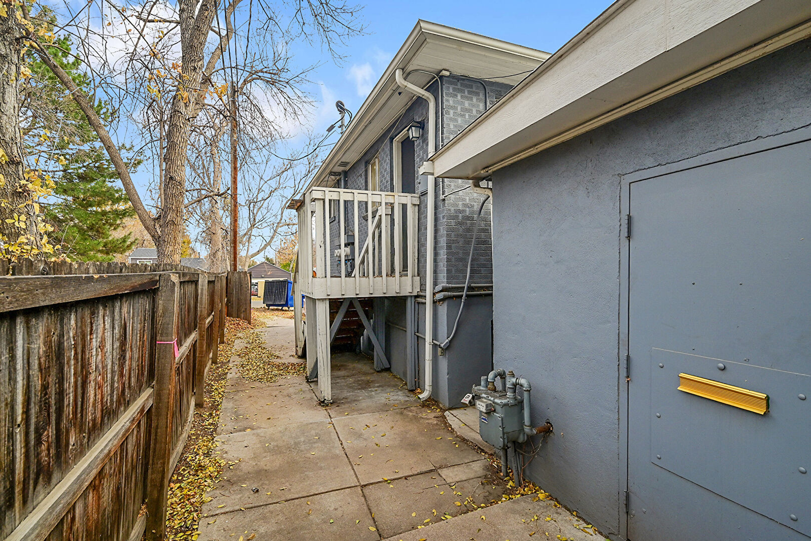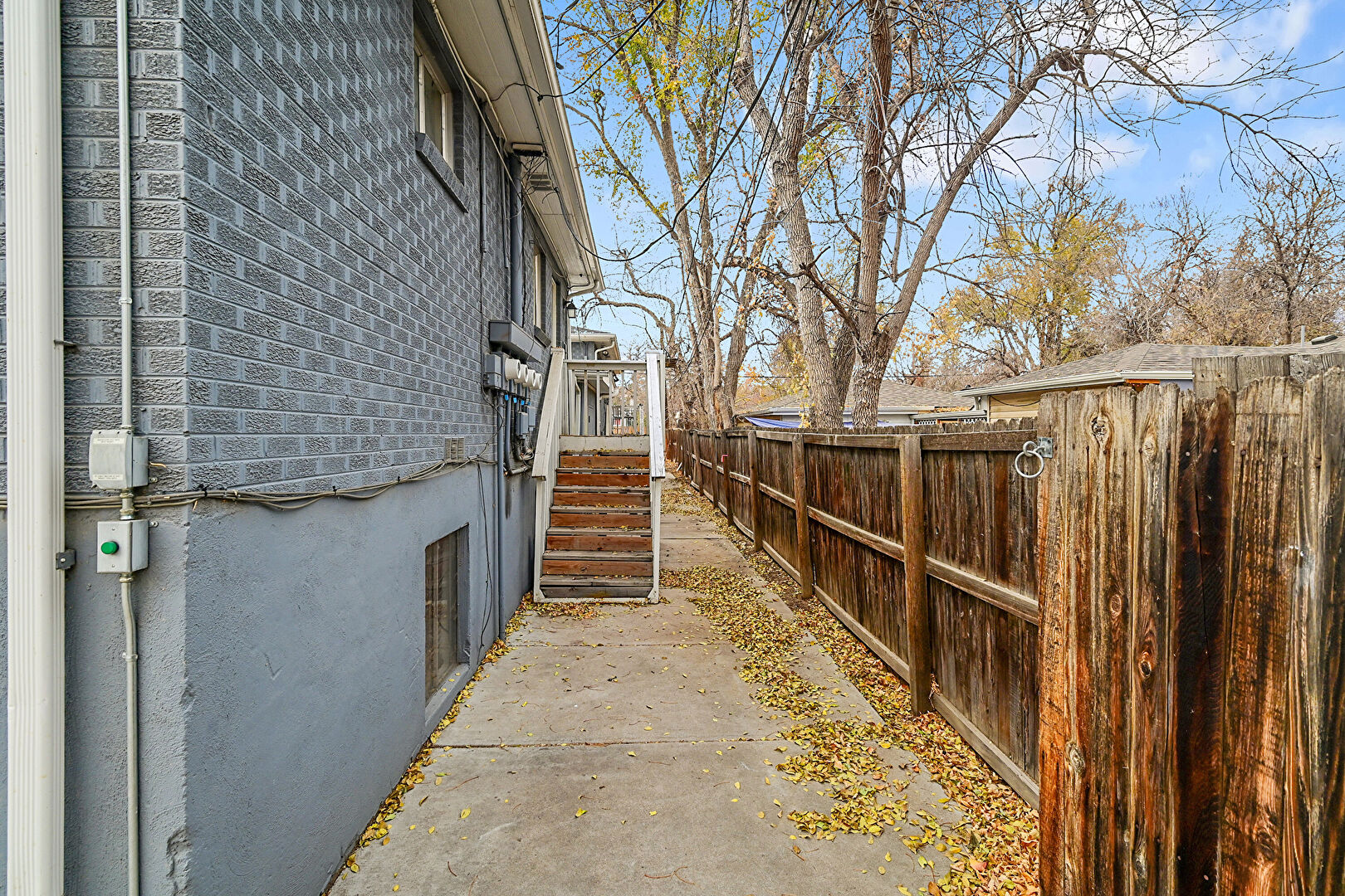 Brick Siding, Deck, Downspout, Fence, Gas Meter, Gutters, Stairs, Concrete Foundation, Stucco Siding