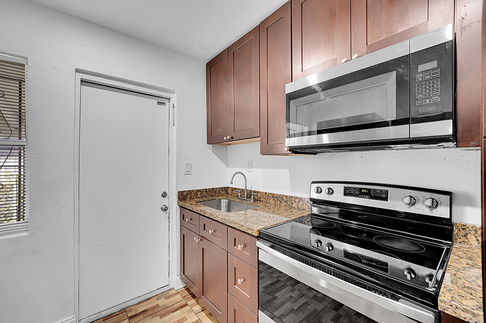 Arched Walkways, Dark Brown Cabinets, Drywall, Medium Brown Cabinets, Shaker Cabinets, Stone Countertops, Vent, Wood Finish Floor, Baseboards Wall, Natural Light