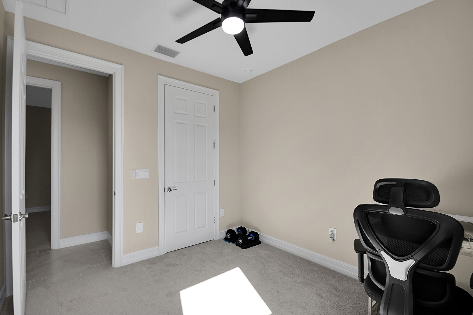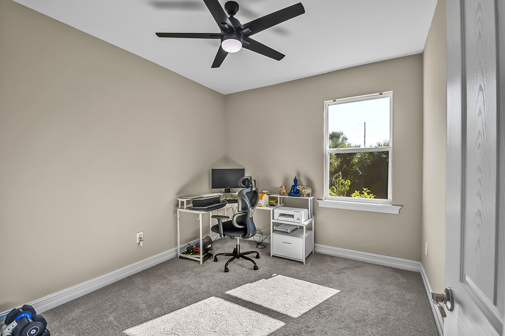Baseboards Wall, Carpet, Ceiling Fan, Closet, Drywall, Natural Light, Office Area, Smoke Carbon Monoxide Detector, Vent, Baseboards Wall, Carpet, Ceiling Fan, Drywall, Natural Light