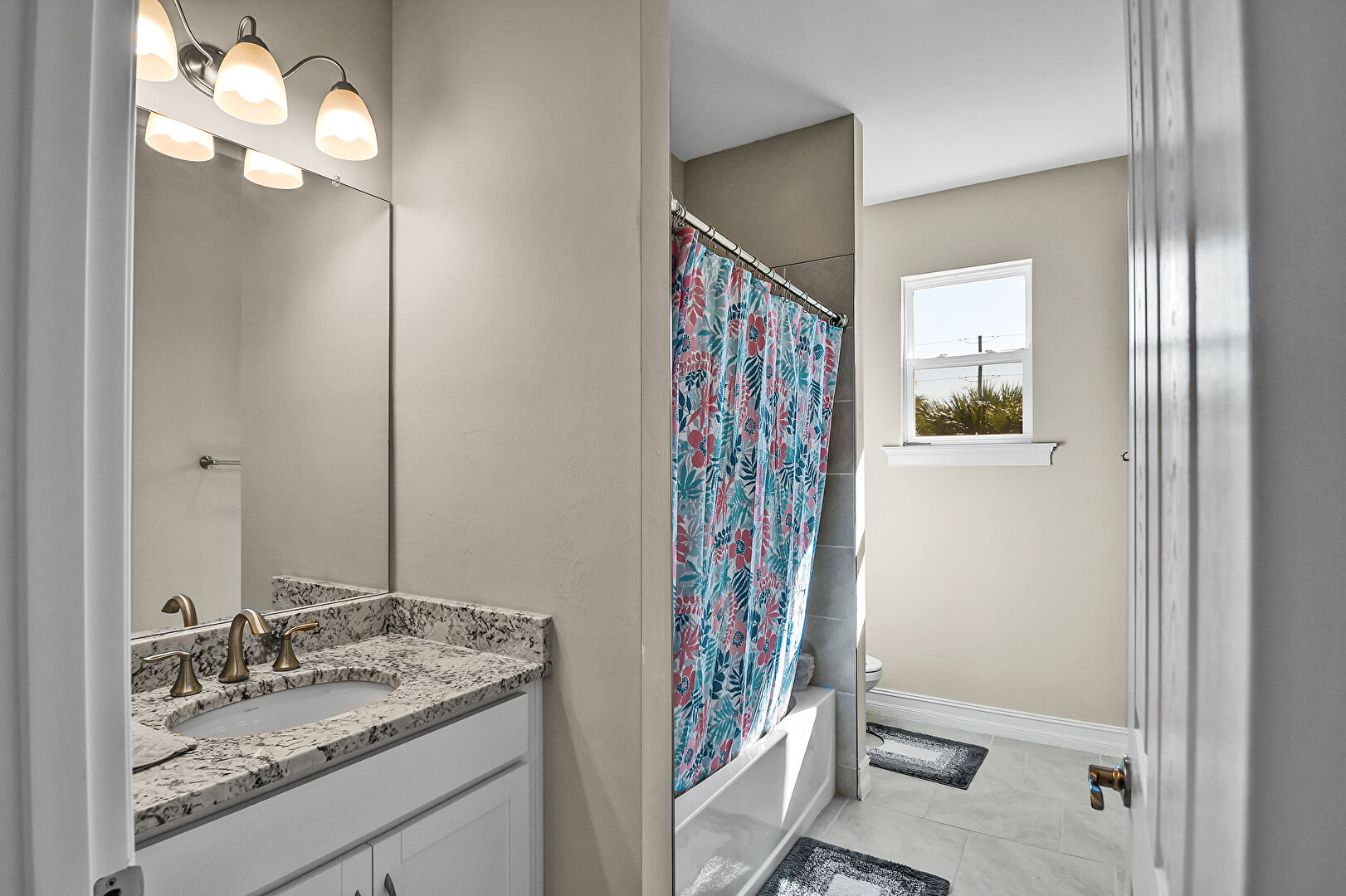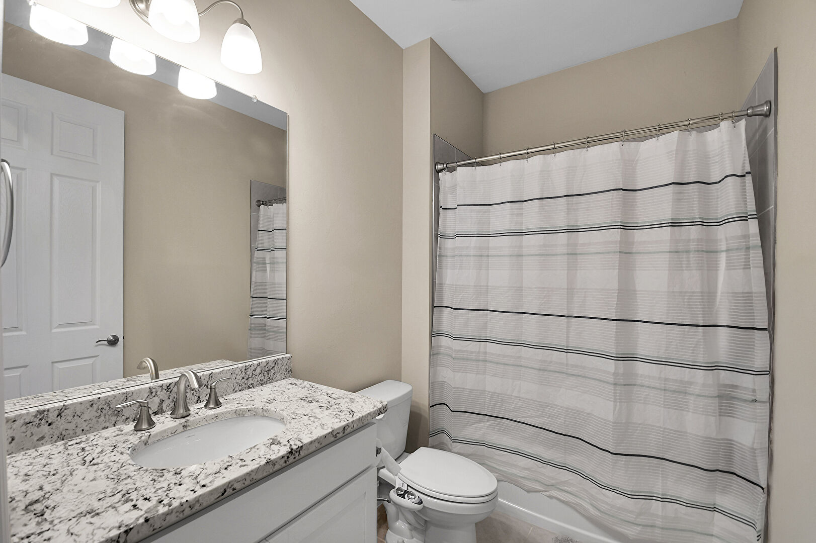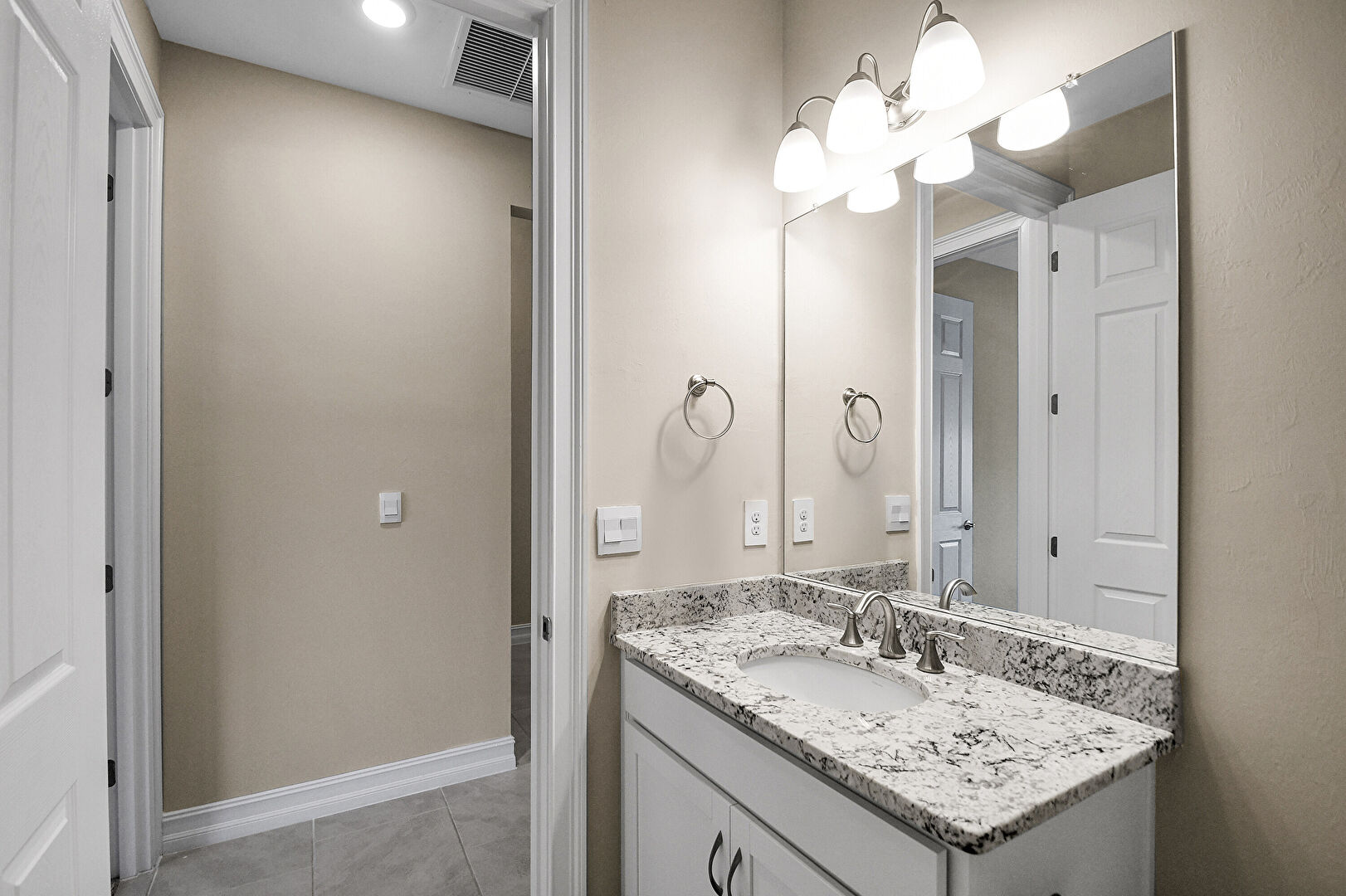 Baseboards Wall, Combined Bath Shower, Drywall, Full Bathroom, Half Bathroom, Natural Light, Notable Chandelier, Recessed Lighting, Tile Floor, Vanity, Vent, Natural Light, Tile Floor, Vanity