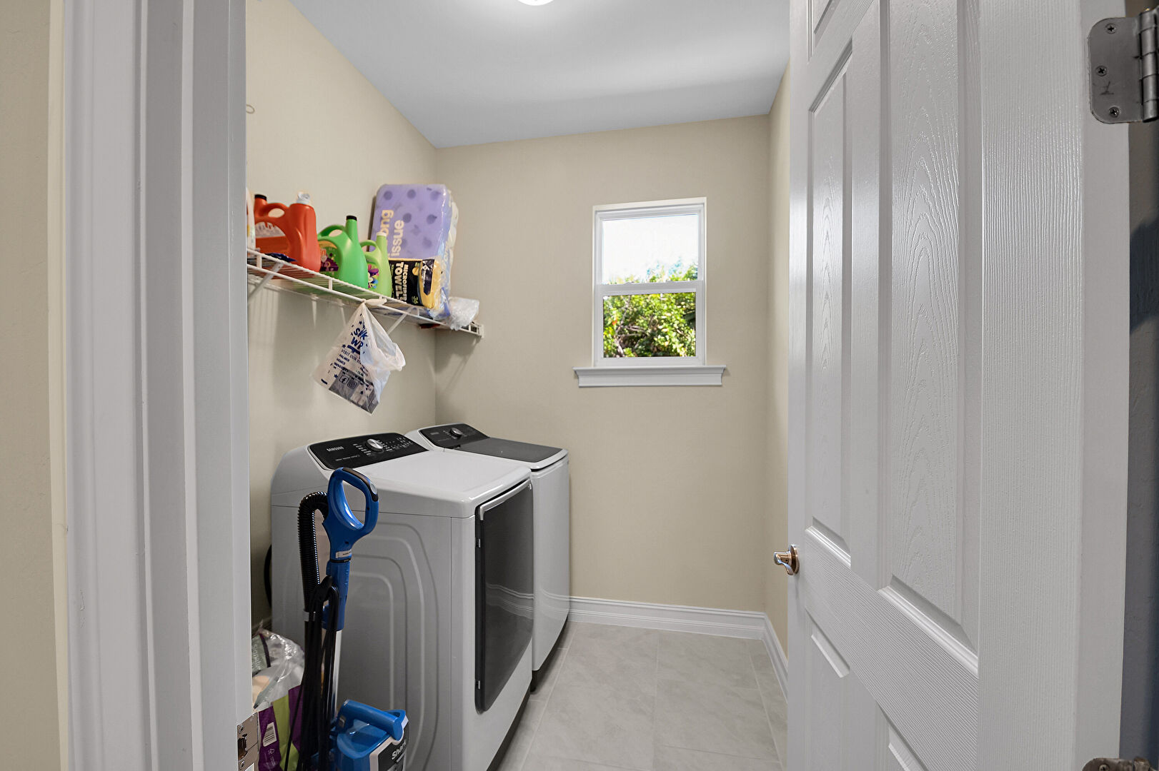 Drywall, Laundry, Natural Light, Tile Floor, Baseboards Wall