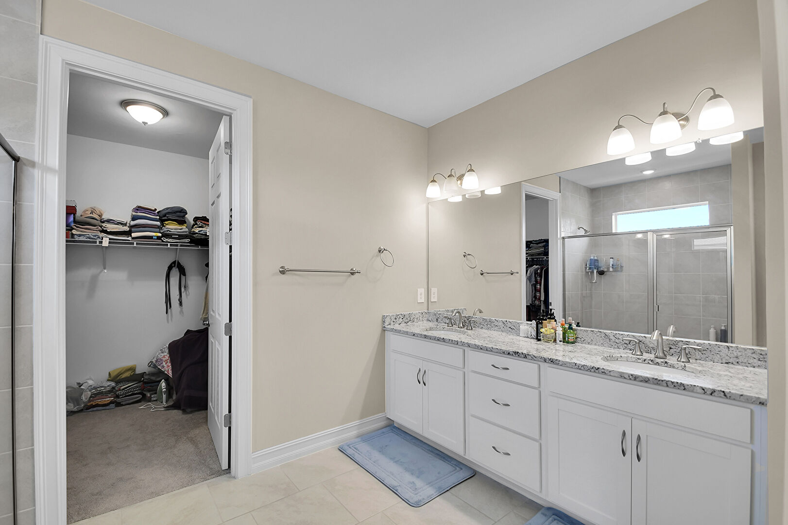 Baseboards Wall, Carpet, Double Vanity, Drywall, Ensuite Bathroom, Full Bathroom, Natural Light, Recessed Lighting, Tile Floor, Vanity, Vent, Walk In Closet, Water Closet, Double Vanity, Full Bathroom, Tile Floor