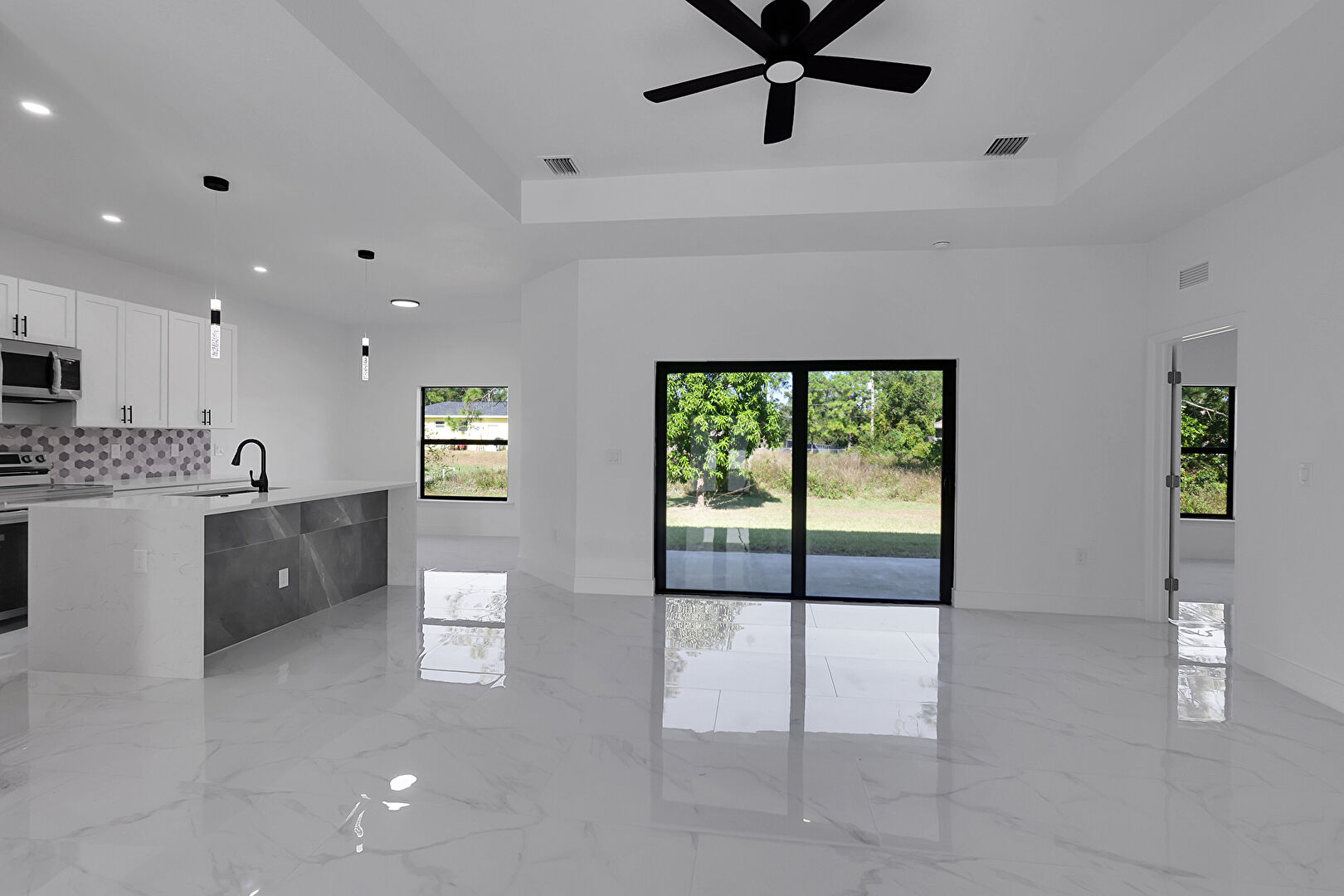 Baseboards Wall, Ceiling Fan, Drywall, French Doors, Marble Finish Floor, Natural Light, Recessed Lighting, Tray Ceiling, Vent, Ceiling Fan, Marble Finish Floor, Recessed Lighting
