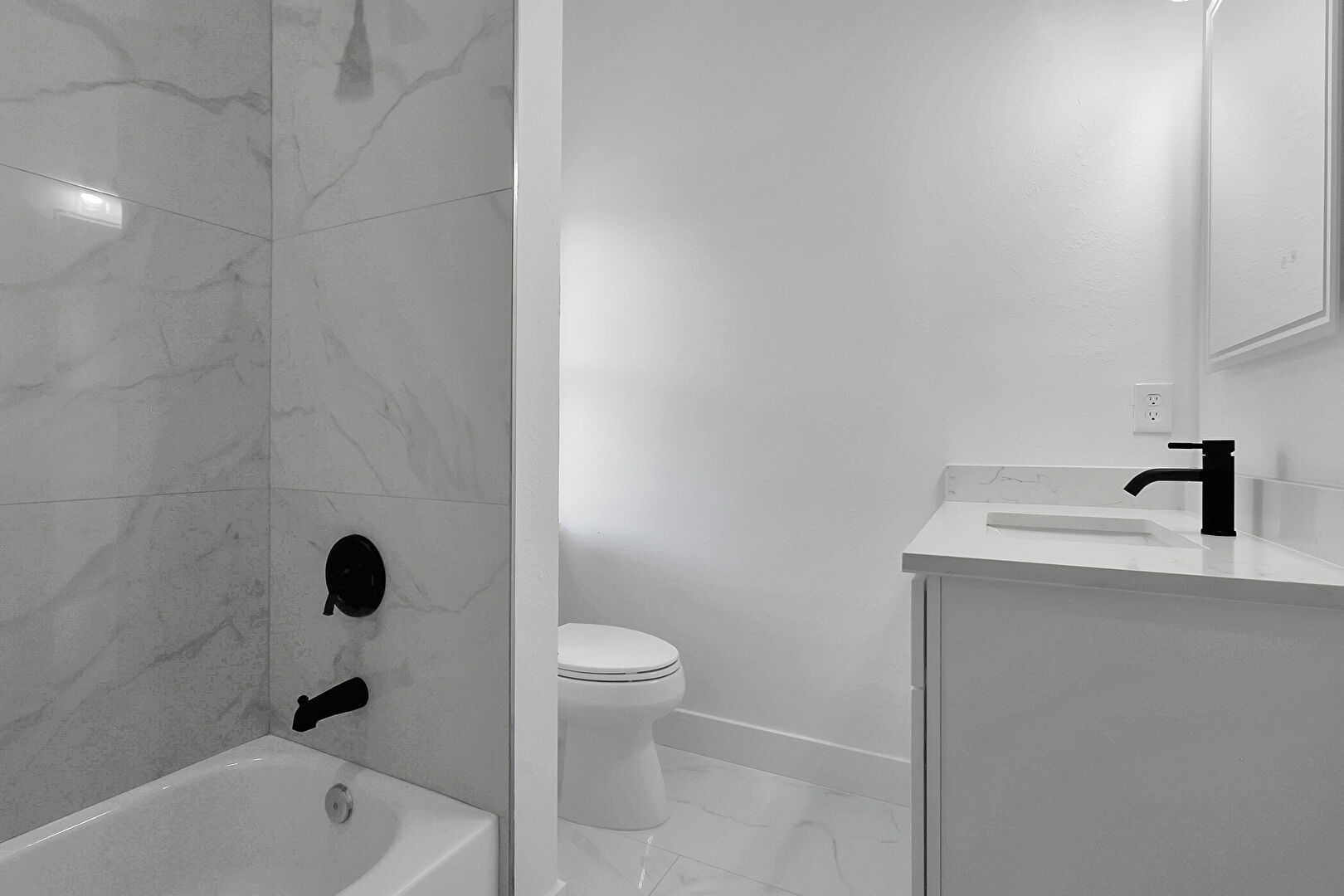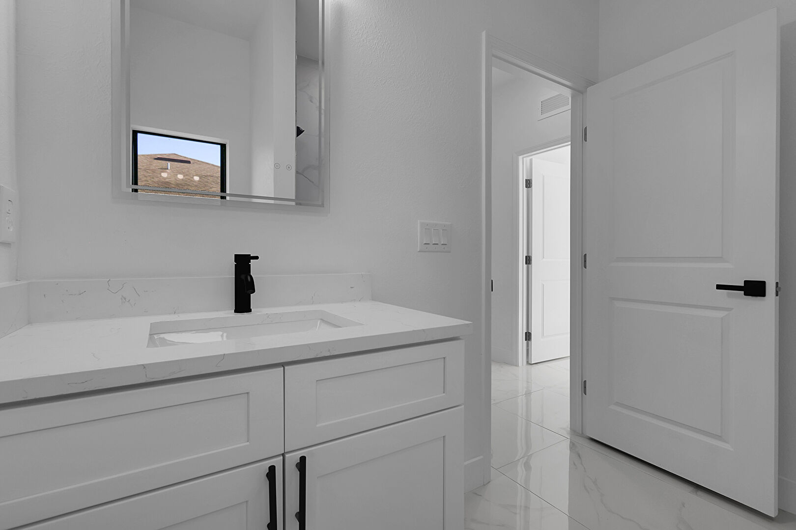 Baseboards Wall, Combined Bath Shower, Drywall, Full Bathroom, Half Bathroom, Marble Finish Floor, Natural Light, Vanity, Vent, Marble Finish Floor, Vanity