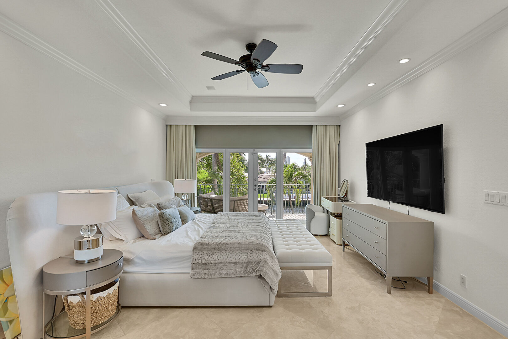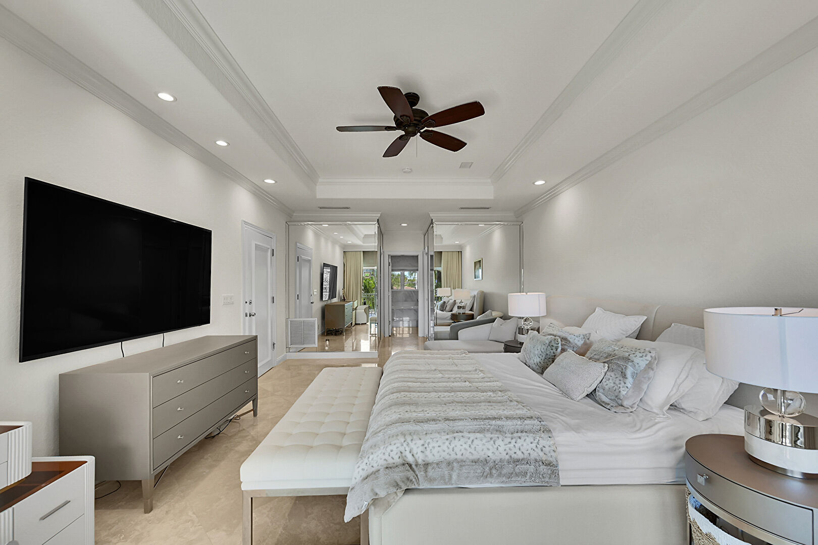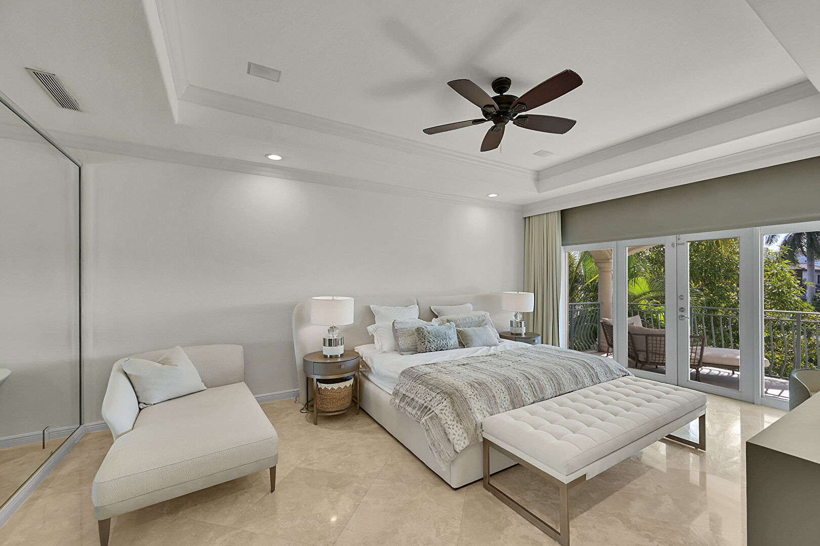 Access To Exterior, Baseboards Wall, Carpet, Ceiling Fan, Closet, Crown Molding, Drywall, French Doors, Marble Finish Floor, Natural Light, Recessed Lighting, Tray Ceiling, Vent, Baseboards Wall, Ceiling Fan, Recessed Lighting