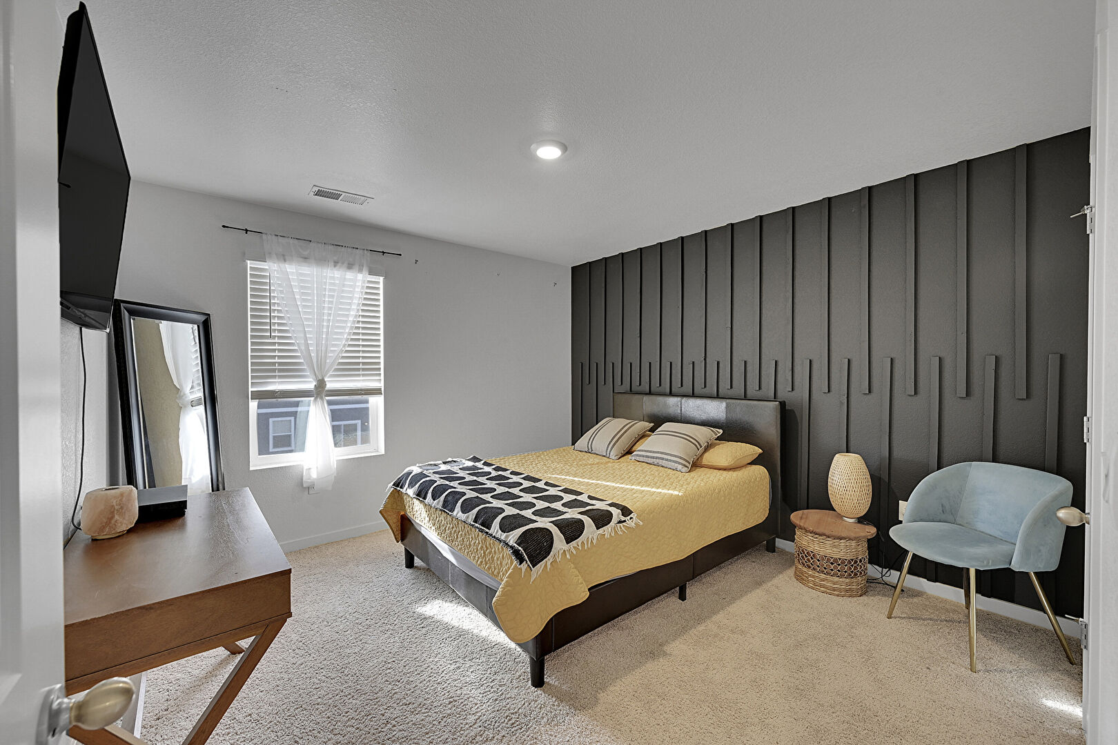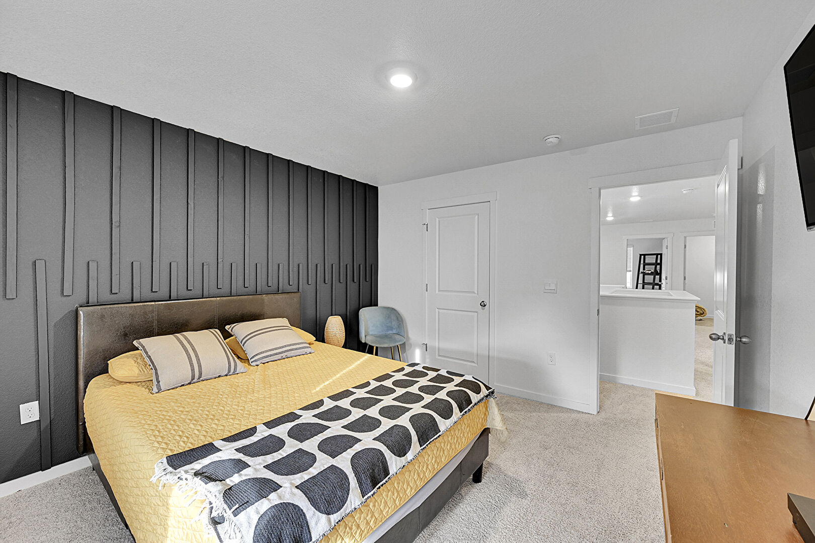 Accent Wall, Baseboards Wall, Carpet, Drywall, Natural Light, Paneling Wall, Recessed Lighting, Vent, Carpet, Vent