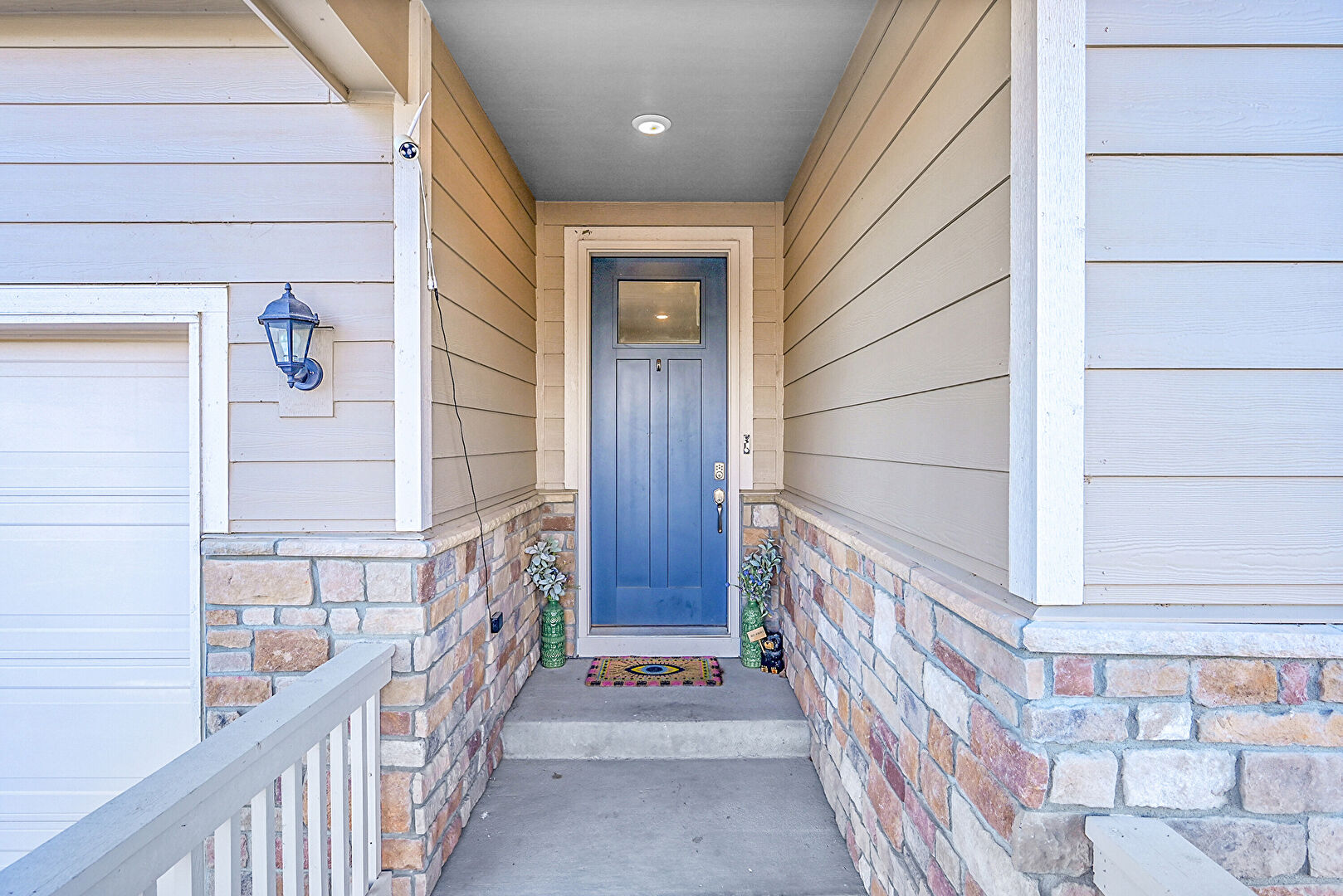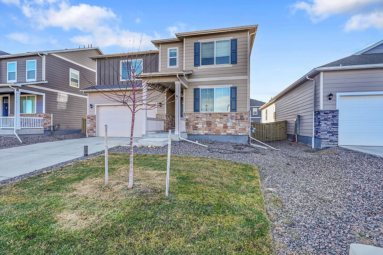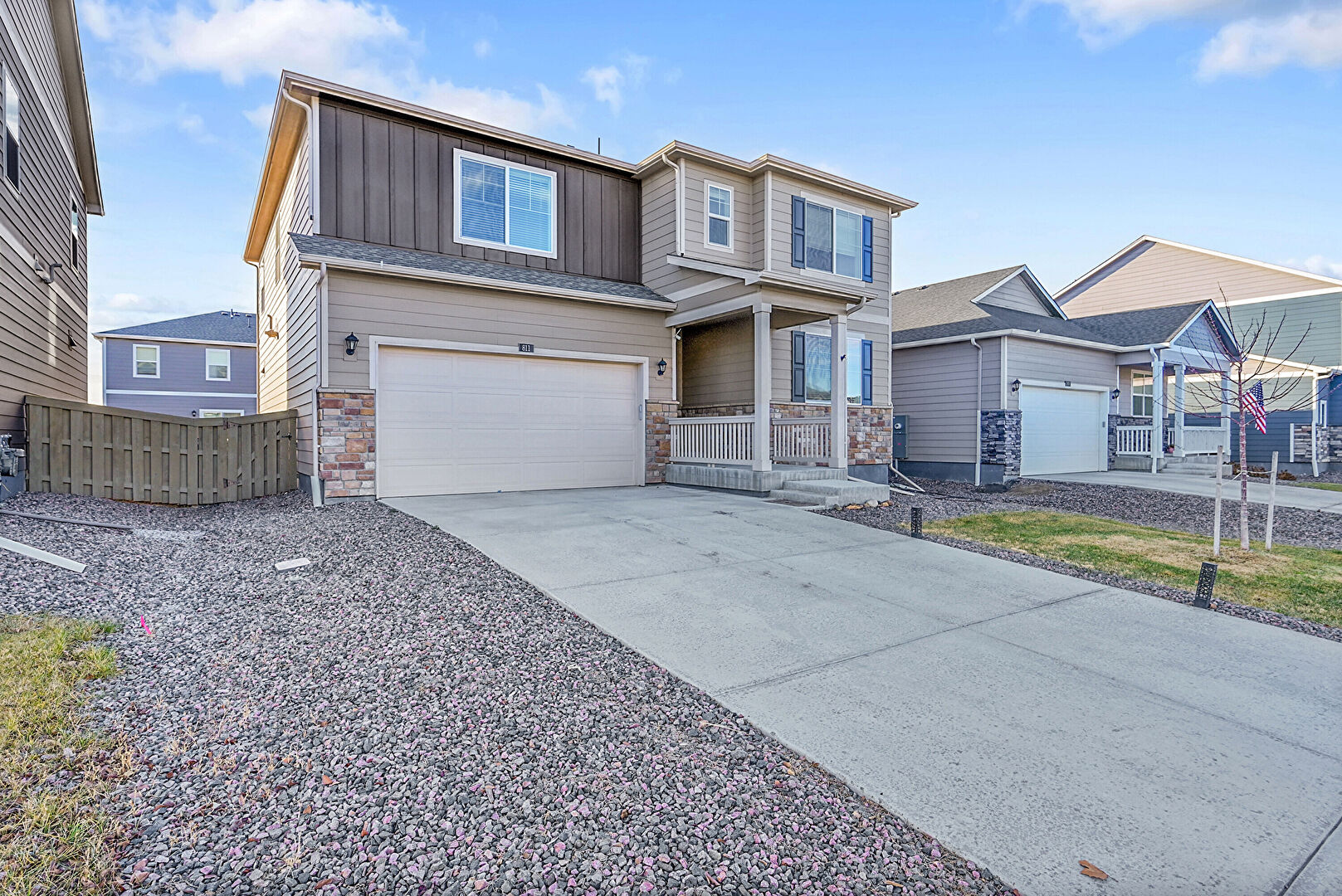 Board Batten Siding, Built In Garage, Concrete Foundation, Downspout, Driveway, Fence, Gas Meter, Gutters, Horizontal Siding, Lawn, Porch, Residential View, Stone Siding, Stoop, Vertical Siding, Board Batten Siding, Concrete Foundation, Driveway