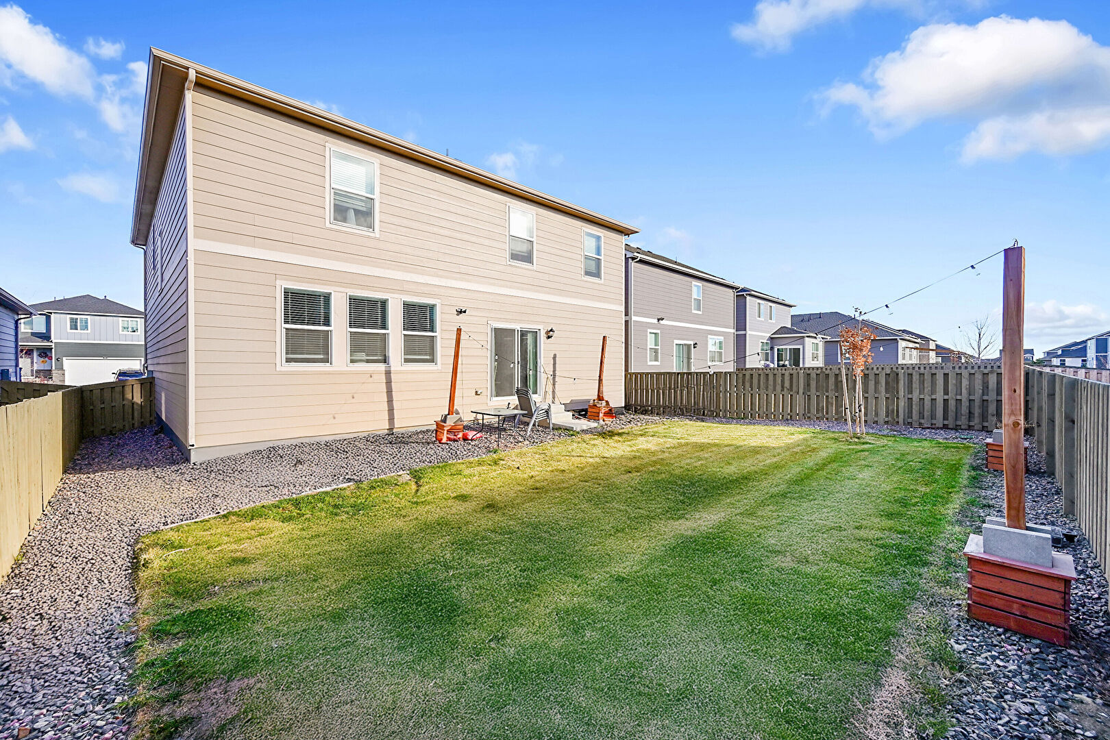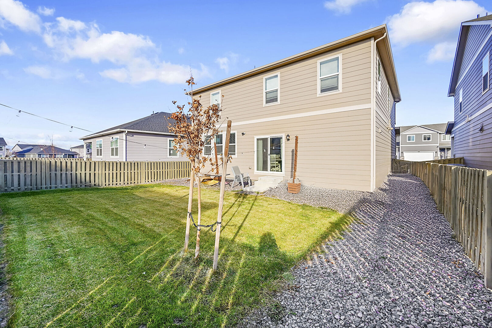 Concrete Foundation, Downspout, Fence, Fire Pit, Gutters, Horizontal Siding, Lawn, Patio, Residential View, Horizontal Siding, Patio