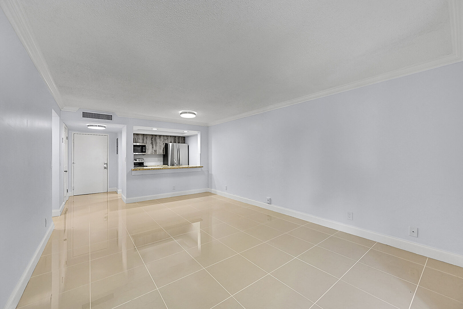 Baseboards Wall, Crown Molding, Drywall, Galley Kitchen, Textured Ceiling, Vent, Tile Floor