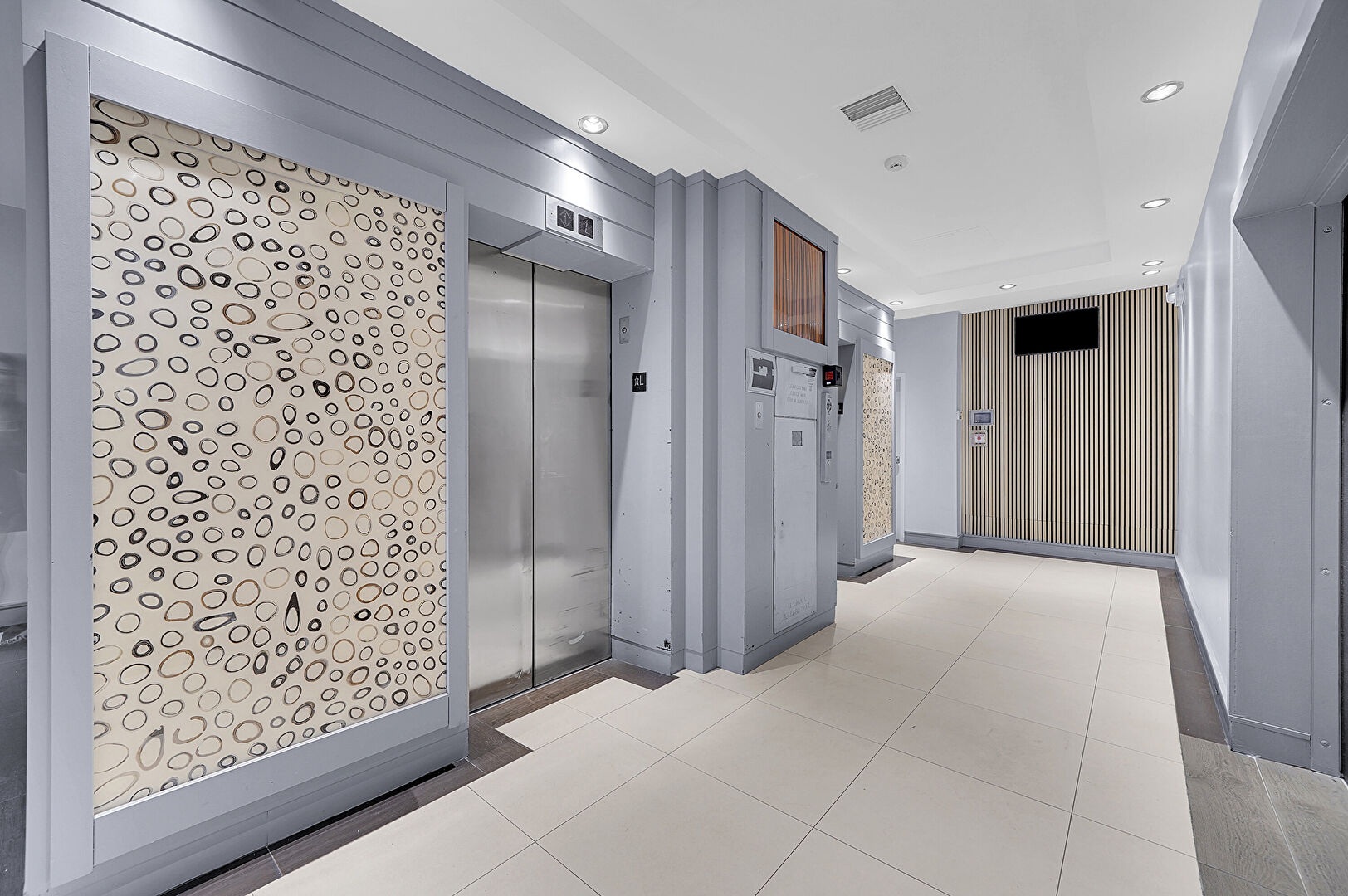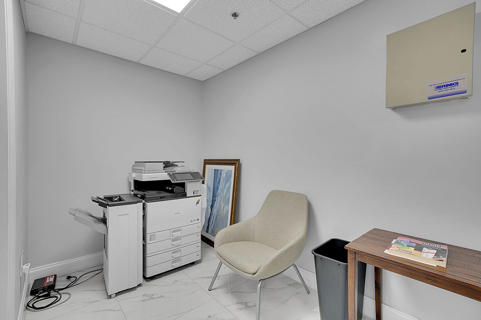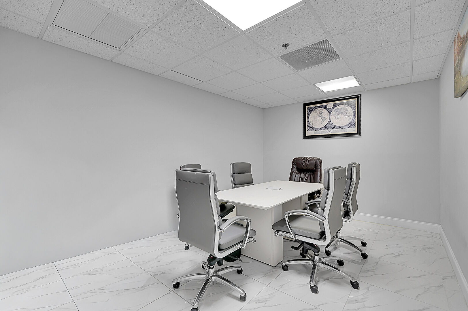 Baseboards Wall, Carpet, Drop Ceiling, Drywall, Elevator, Marble Finish Floor, Natural Light, Office Area, Recessed Lighting, Textured Wall, Tile Floor, Vent, Baseboards Wall, Drop Ceiling, Drywall, Elevator, Fire Alarm, Marble Finish Floor