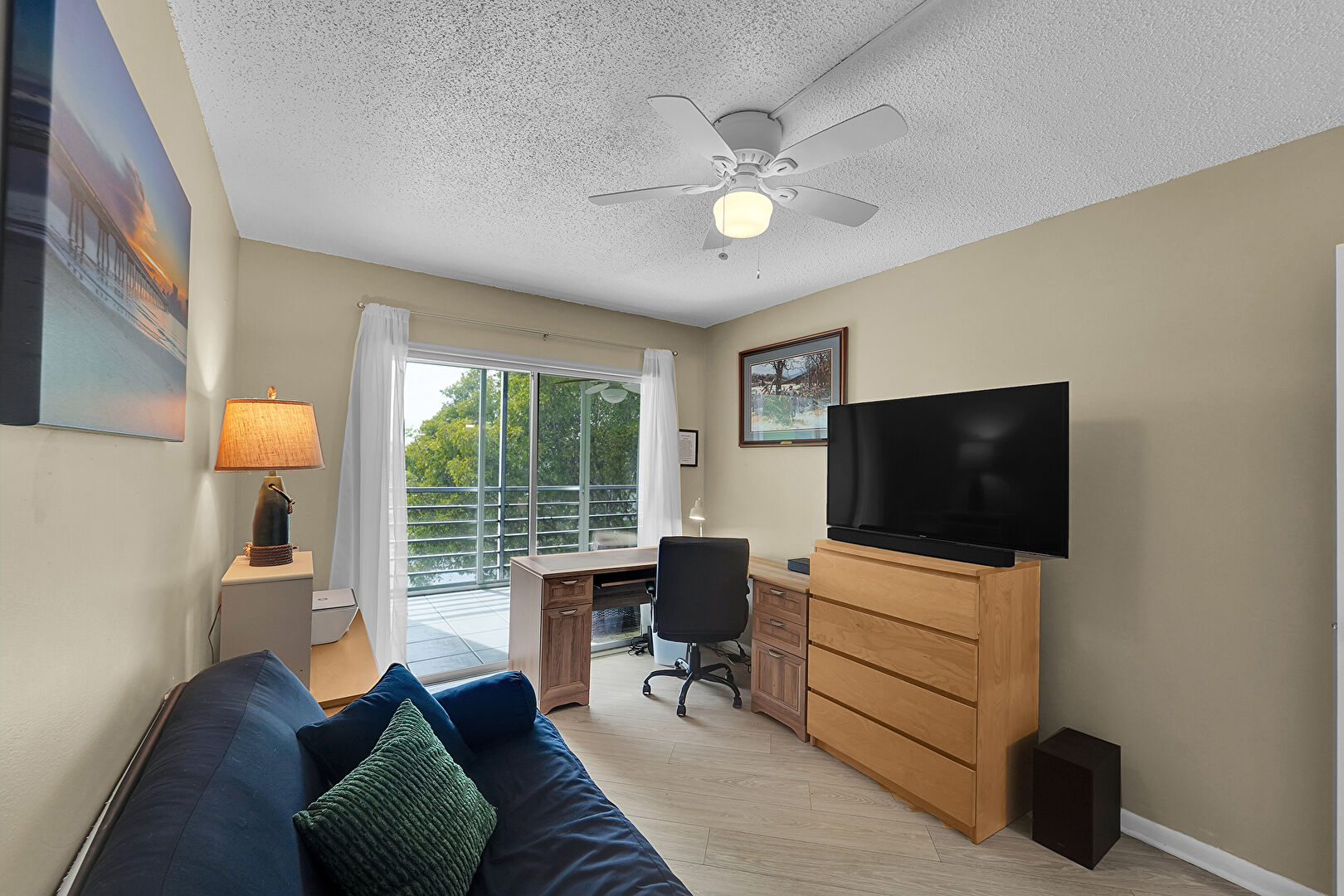 Apartment Complex View, Balcony, Ceiling Fan, Natural Light, Sunroom, Waterfront, Vent, Water View