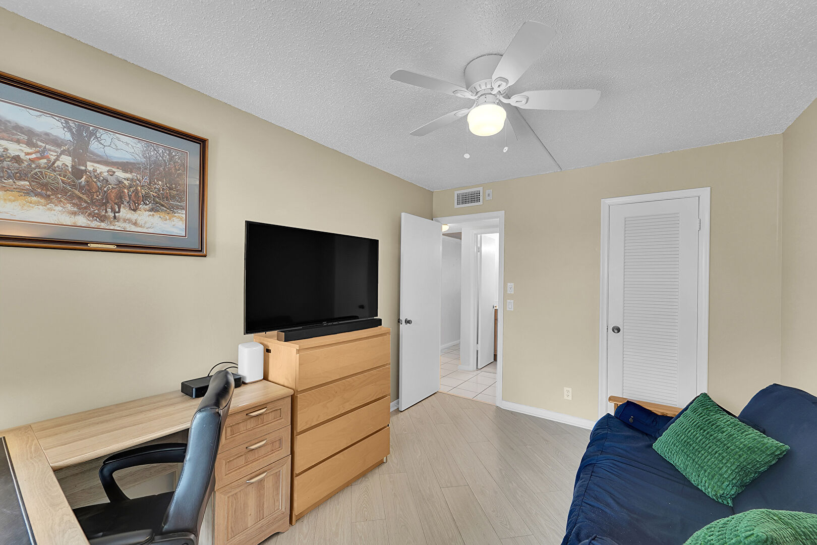Baseboards Wall, Ceiling Fan, Drywall, Natural Light, Office Area, Textured Ceiling, Vent, Wood Finish Floor, Ceiling Fan, Drywall, Natural Light