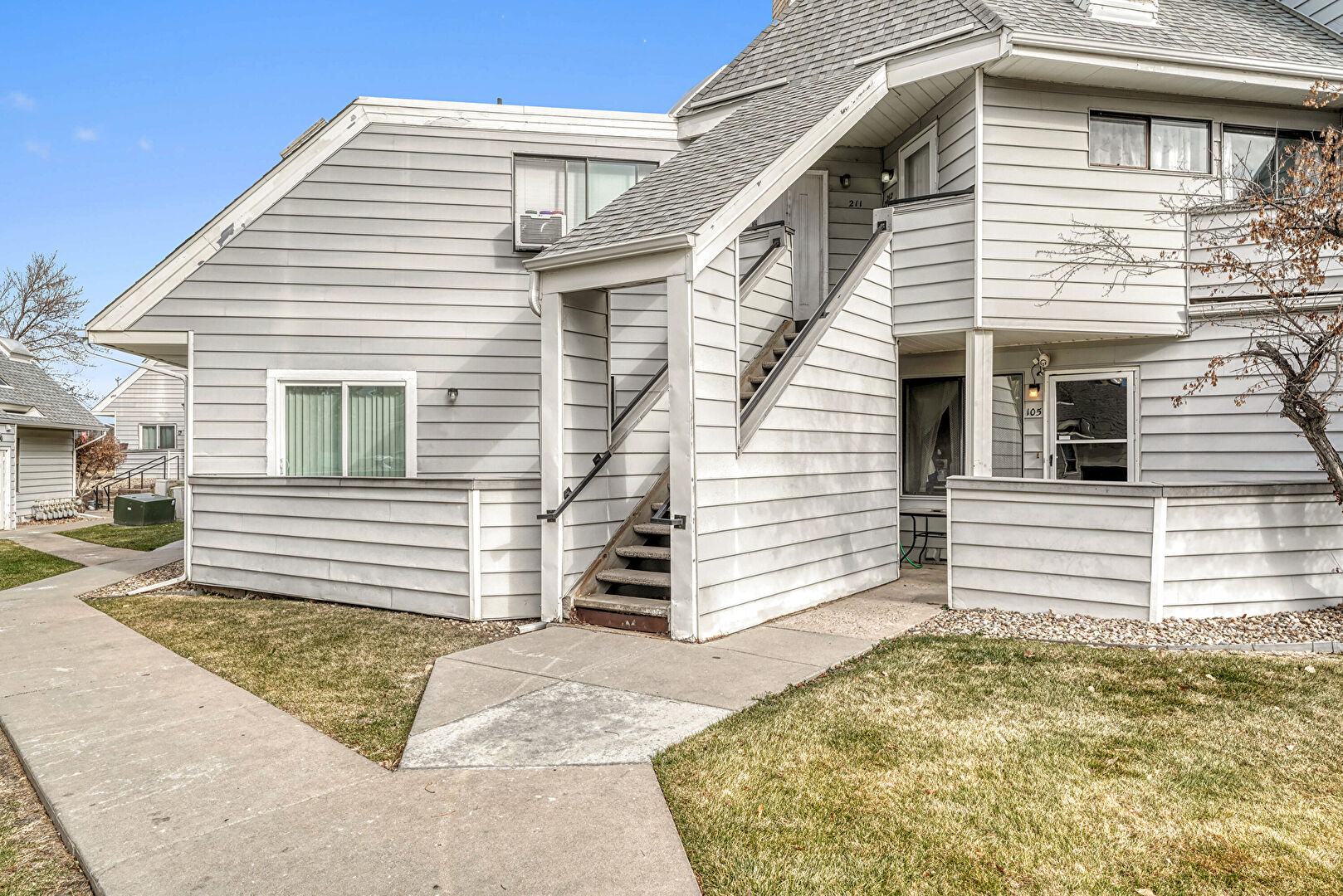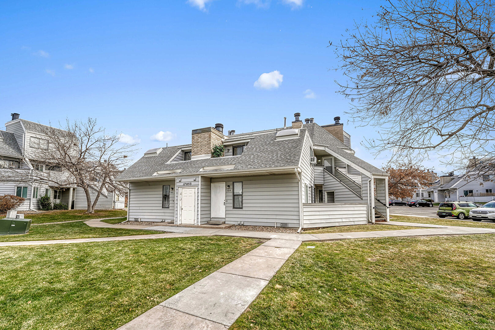 Downspout, Gutters, Horizontal Siding, Lawn, Shingle Roof, Stoop, Window Mounted Ac, Gutters, Horizontal Siding