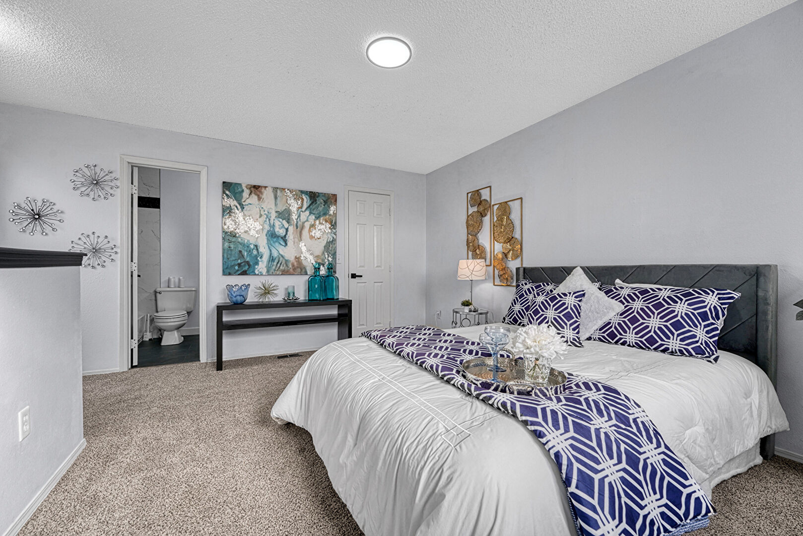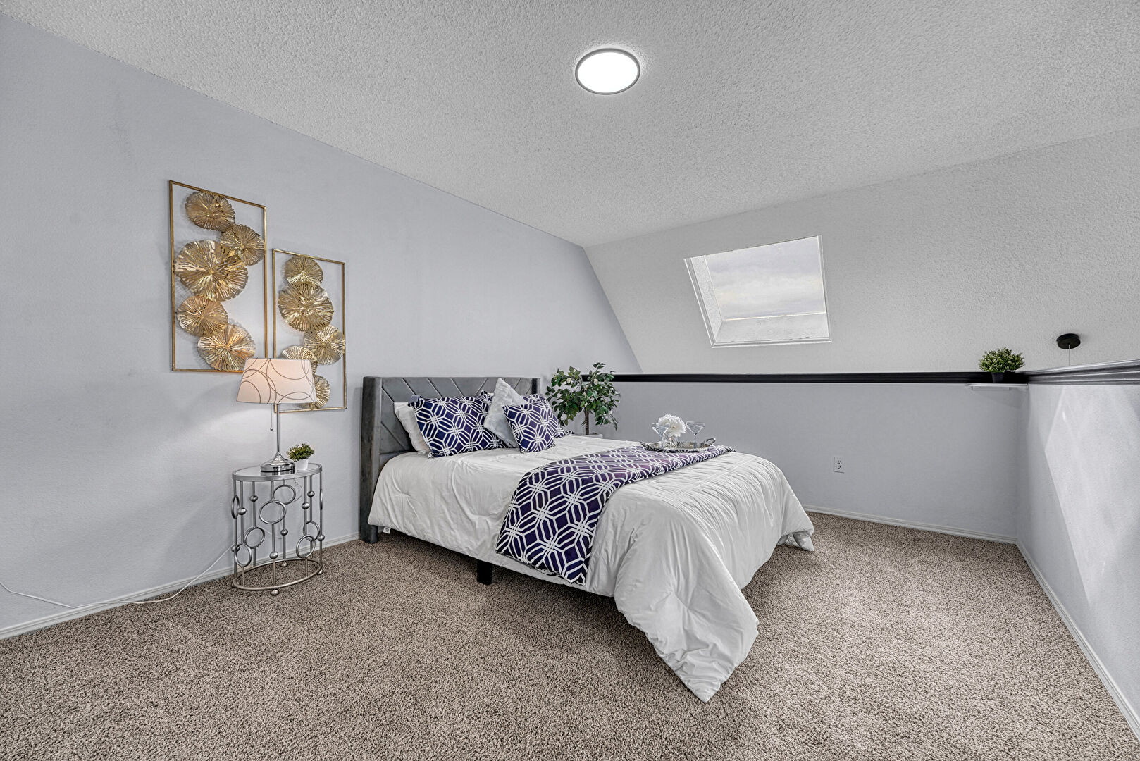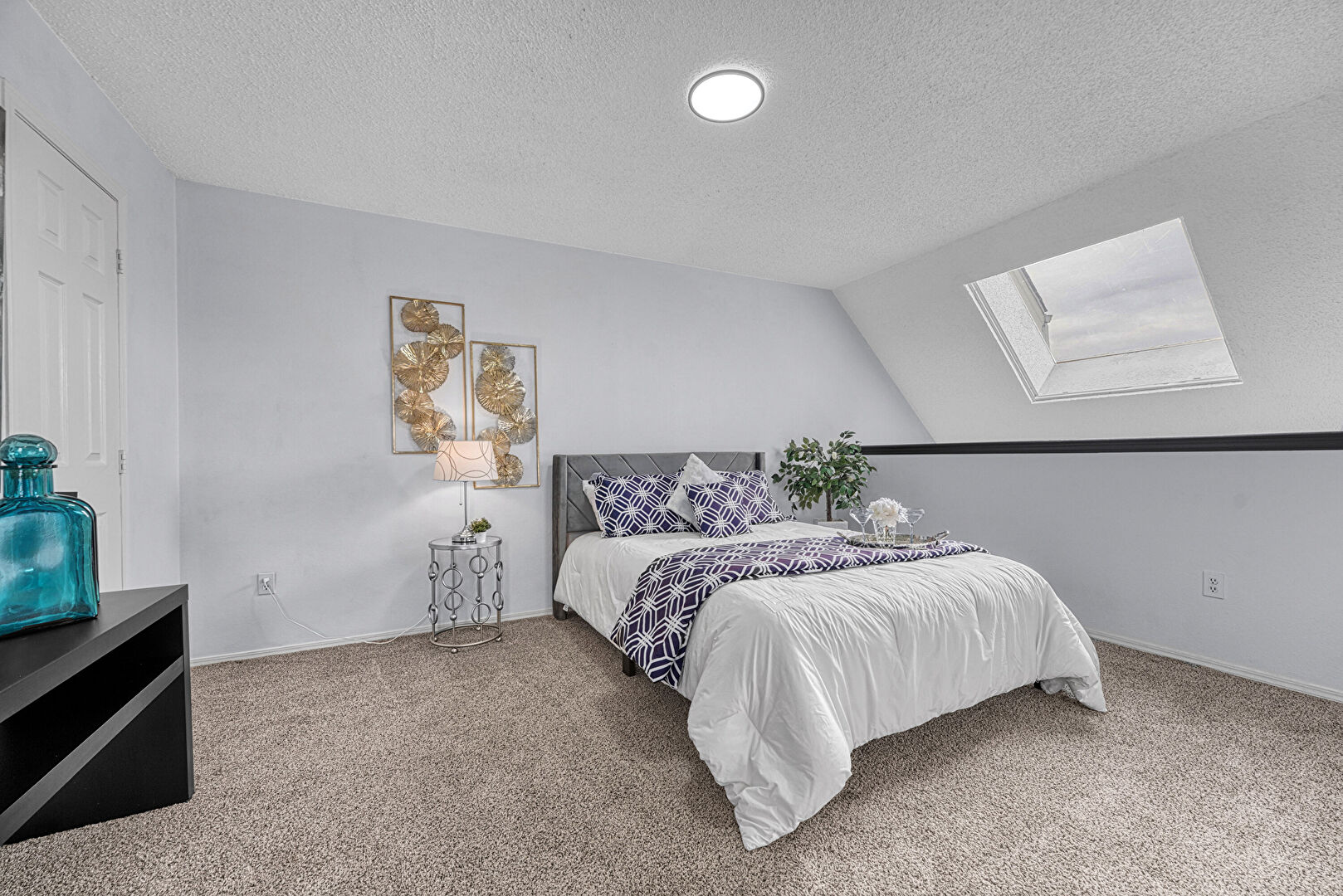 Baseboards Wall, Carpet, Drywall, Ensuite Bathroom, Skylight, Textured Ceiling, Vaulted Ceiling, Carpet, Natural Light, Textured Ceiling