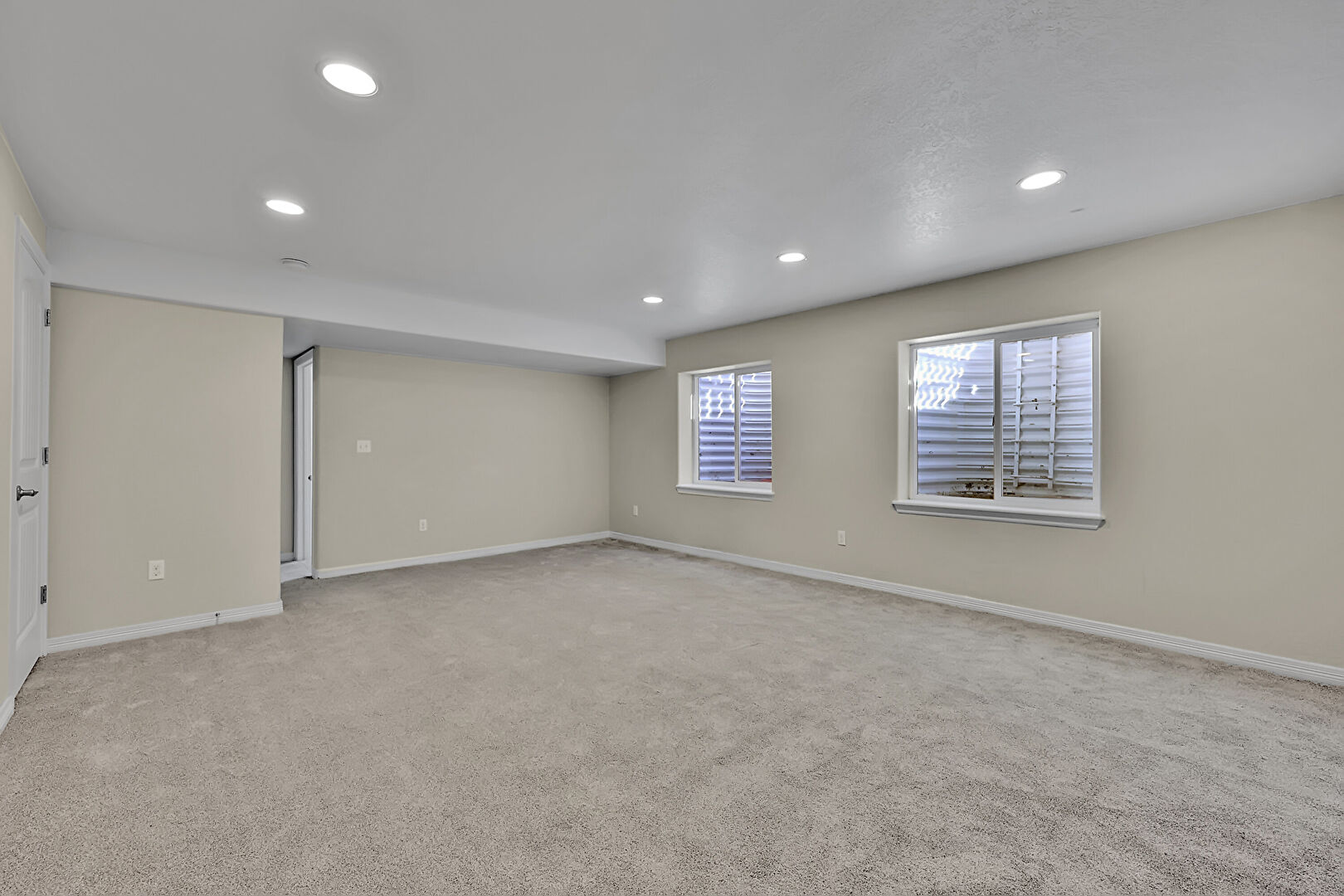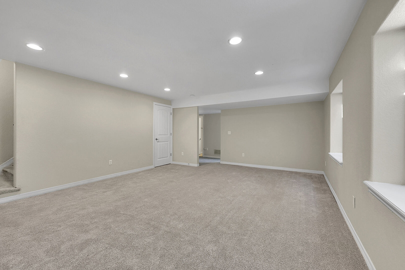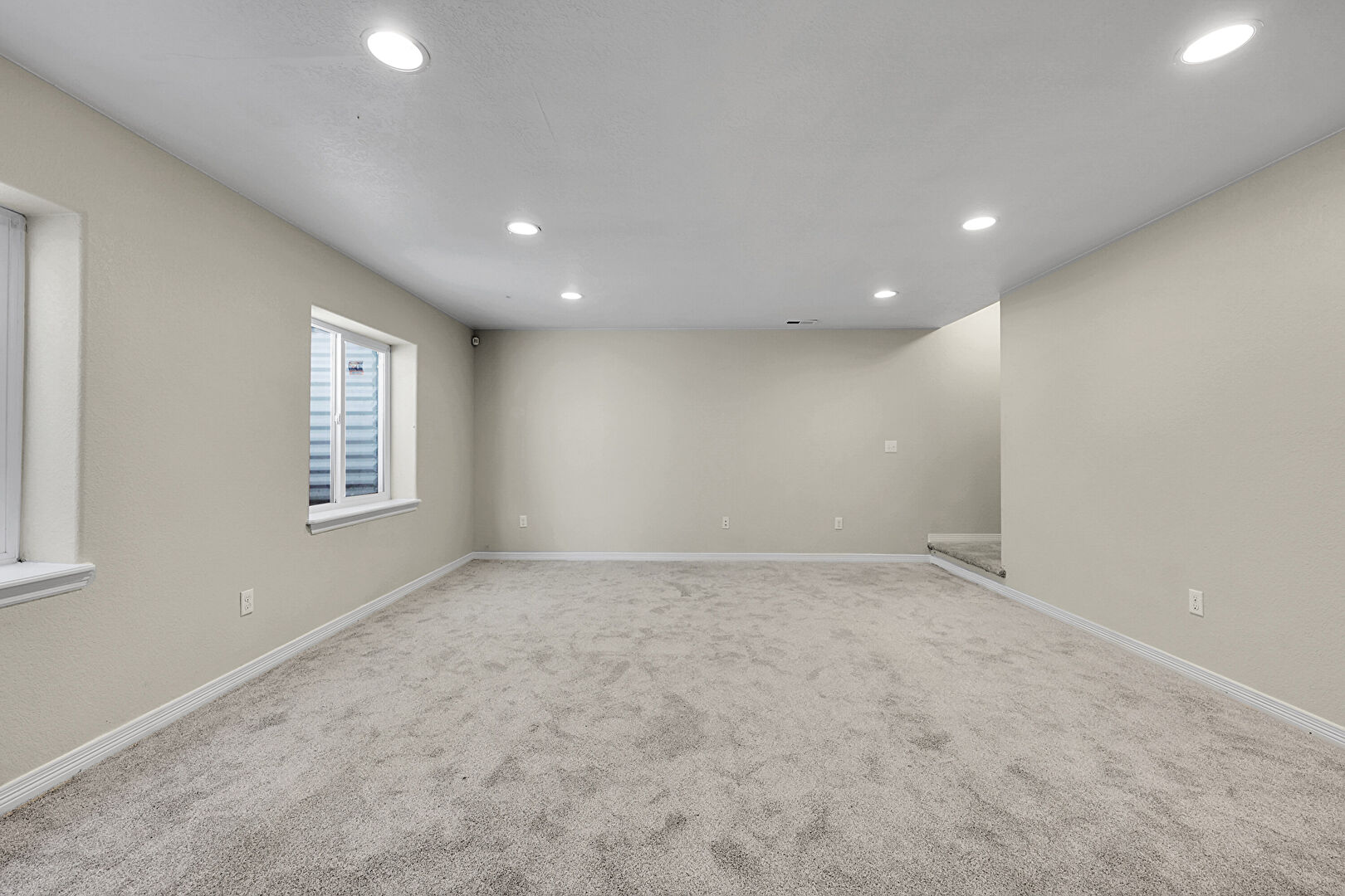 Baseboards Wall, Basement, Carpet, Drywall, Natural Light, Recessed Lighting, Stairs, Drywall, Recessed Lighting
