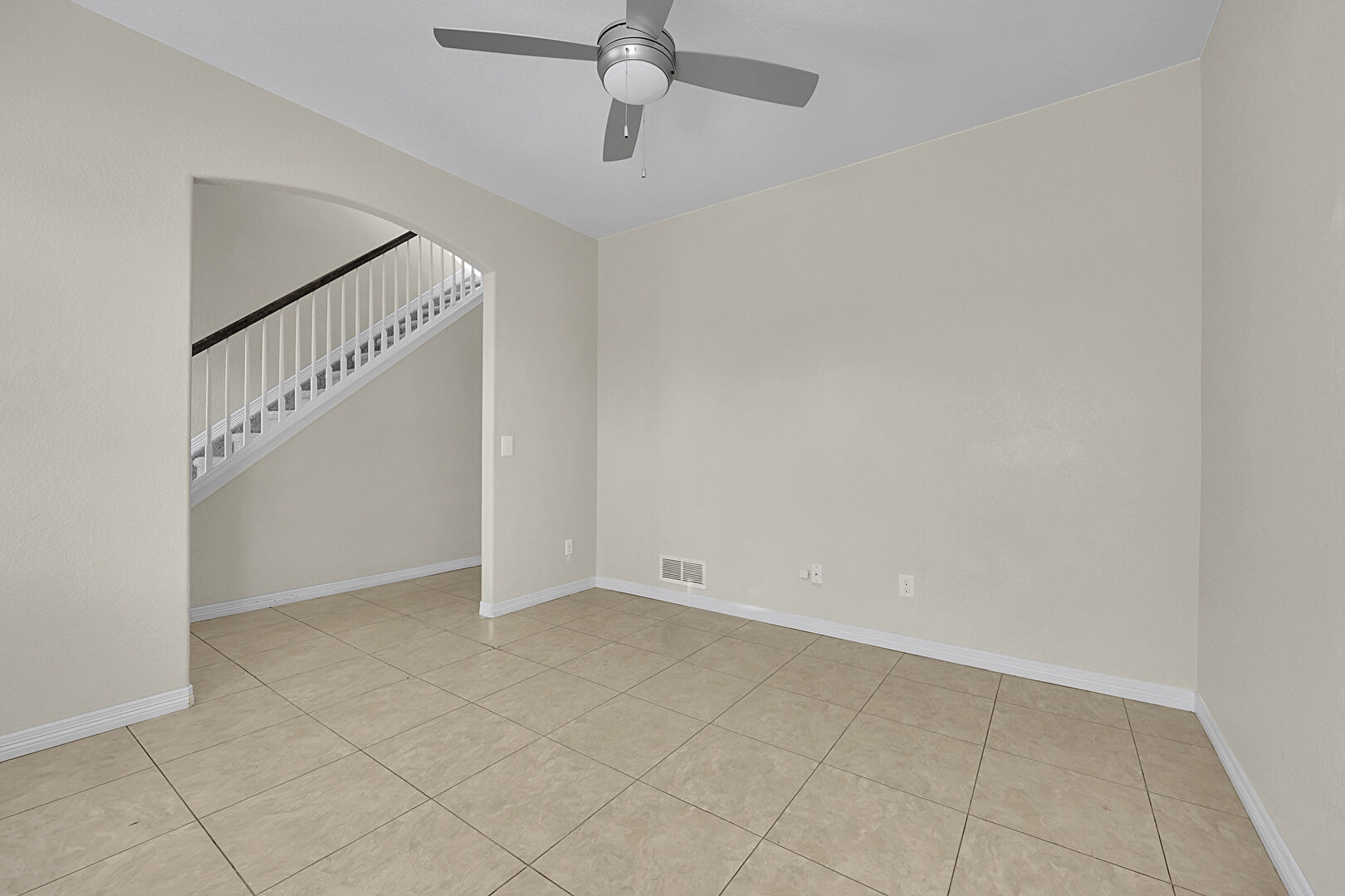 Arched Walkways, Baseboards Wall, Ceiling Fan, Drywall, Natural Light, Stairs, Tile Floor, Vent, Arched Walkways, Natural Light, Tile Floor