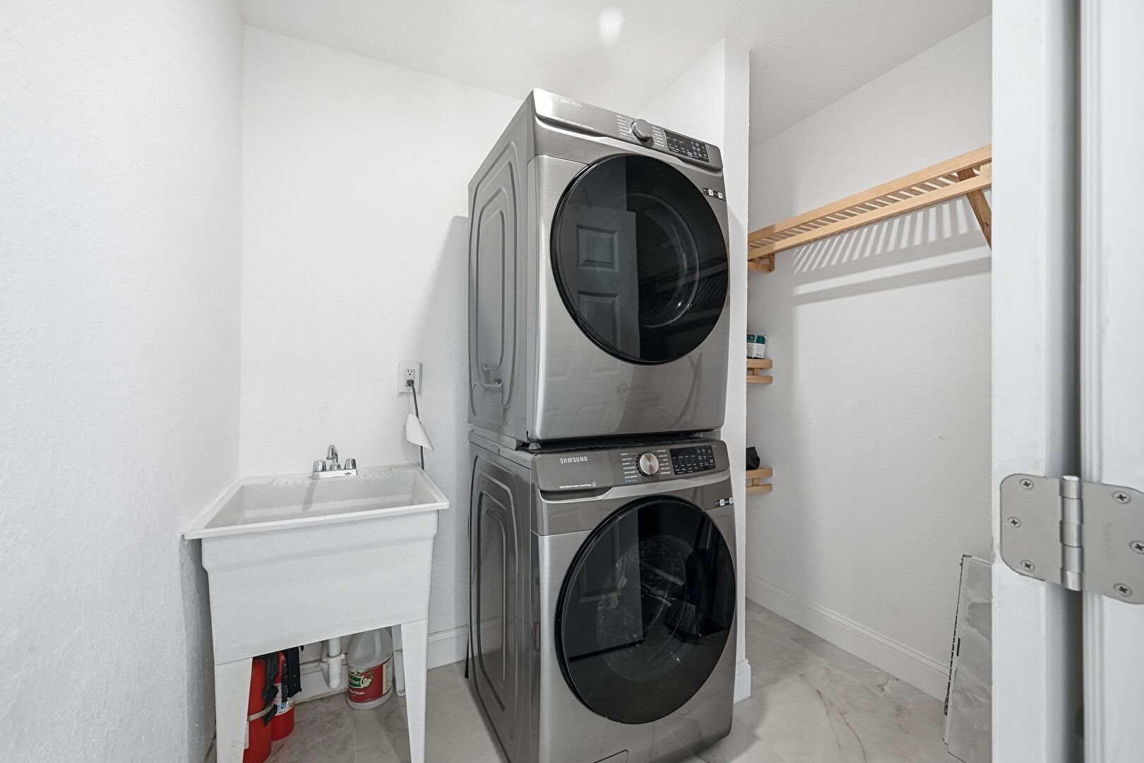 Drywall, Laundry, Marble Finish Floor, Baseboards Wall