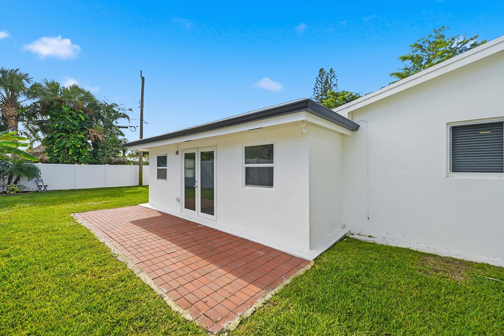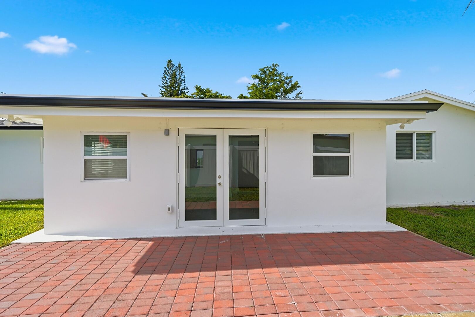 Fence, French Doors, Lawn, Patio, Stucco Siding, Lawn, Patio, Stucco Siding