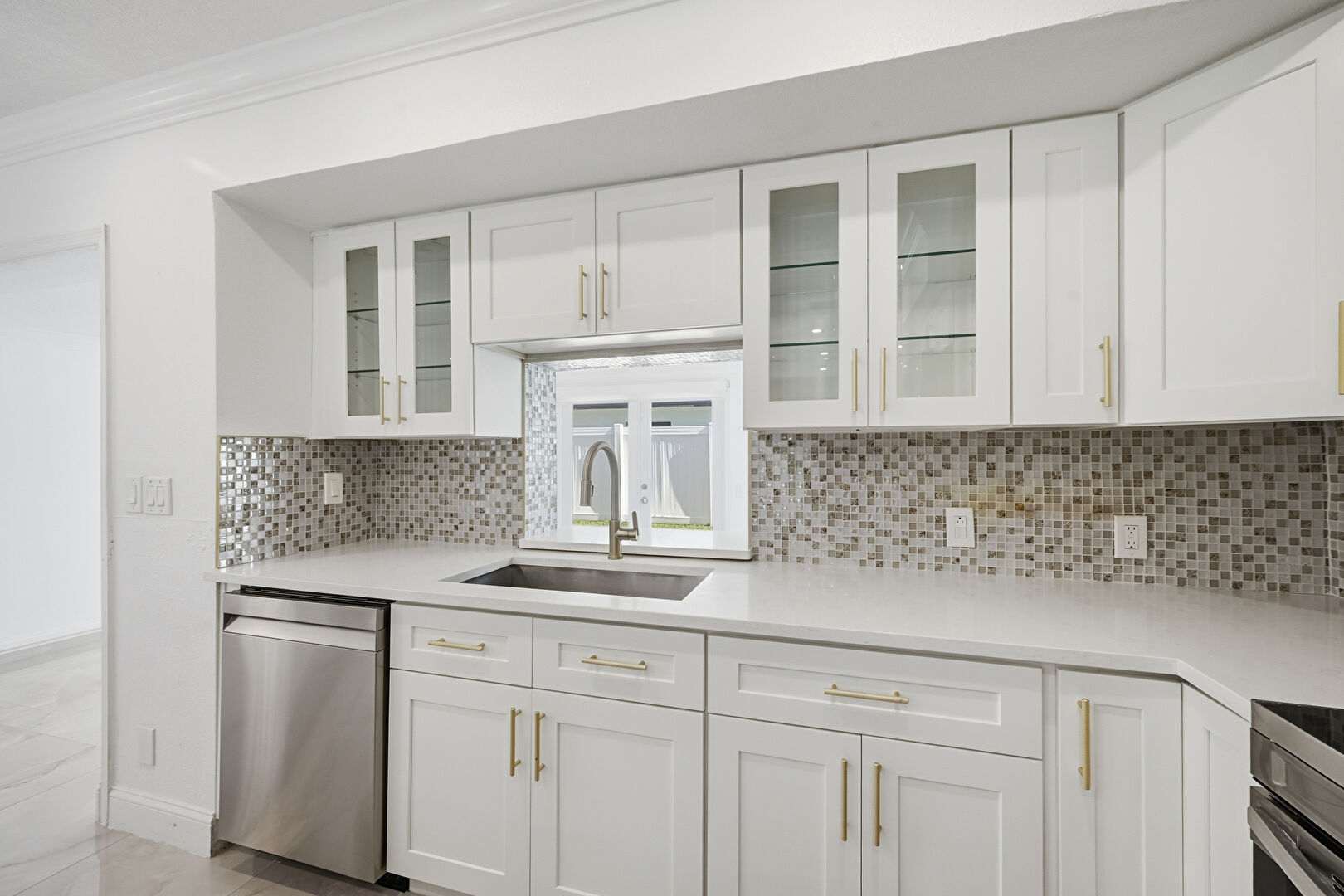 Baseboards Wall, Crown Molding, Drywall, French Doors, Glass Insert Cabinets, Gray Cabinets, Kitchen Bar, Kitchen Island, L Shaped Kitchen, Marble Finish Floor, Natural Light, Opens To Living Area, Pendant Lighting, Recessed Lighting, Shaker Cabinets, Stone Countertops, Vent, Crown Molding, Crown Molding Cabinets, Natural Light, Shaker Cabinets