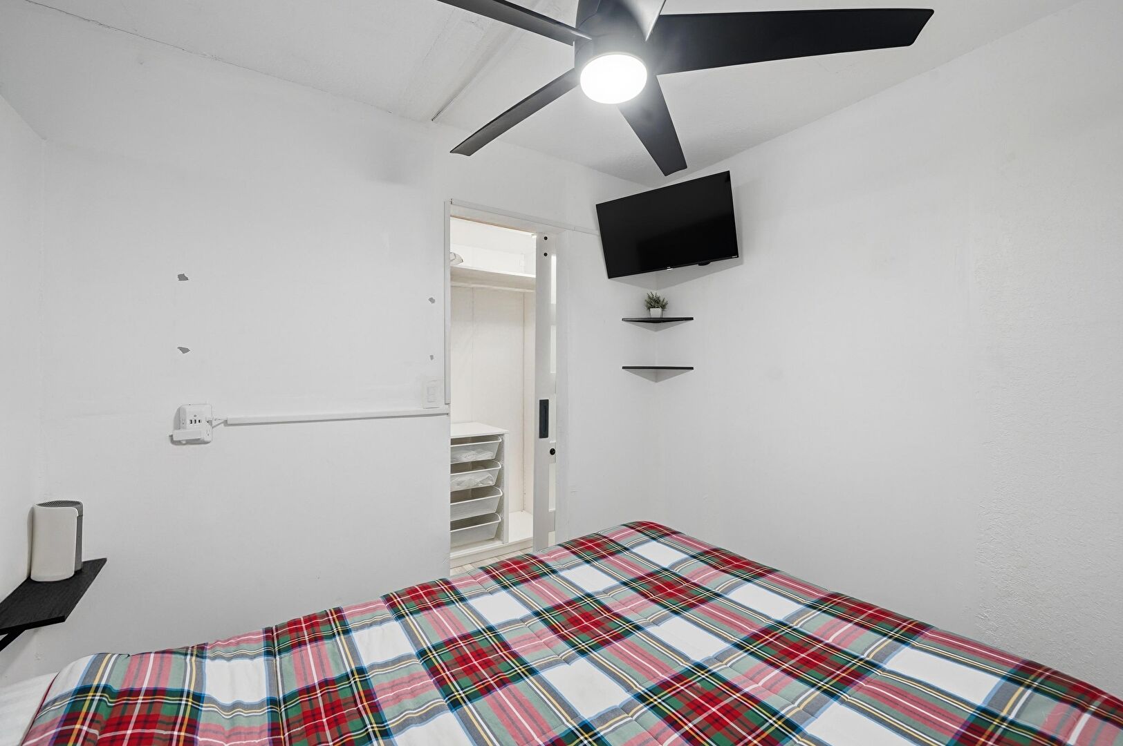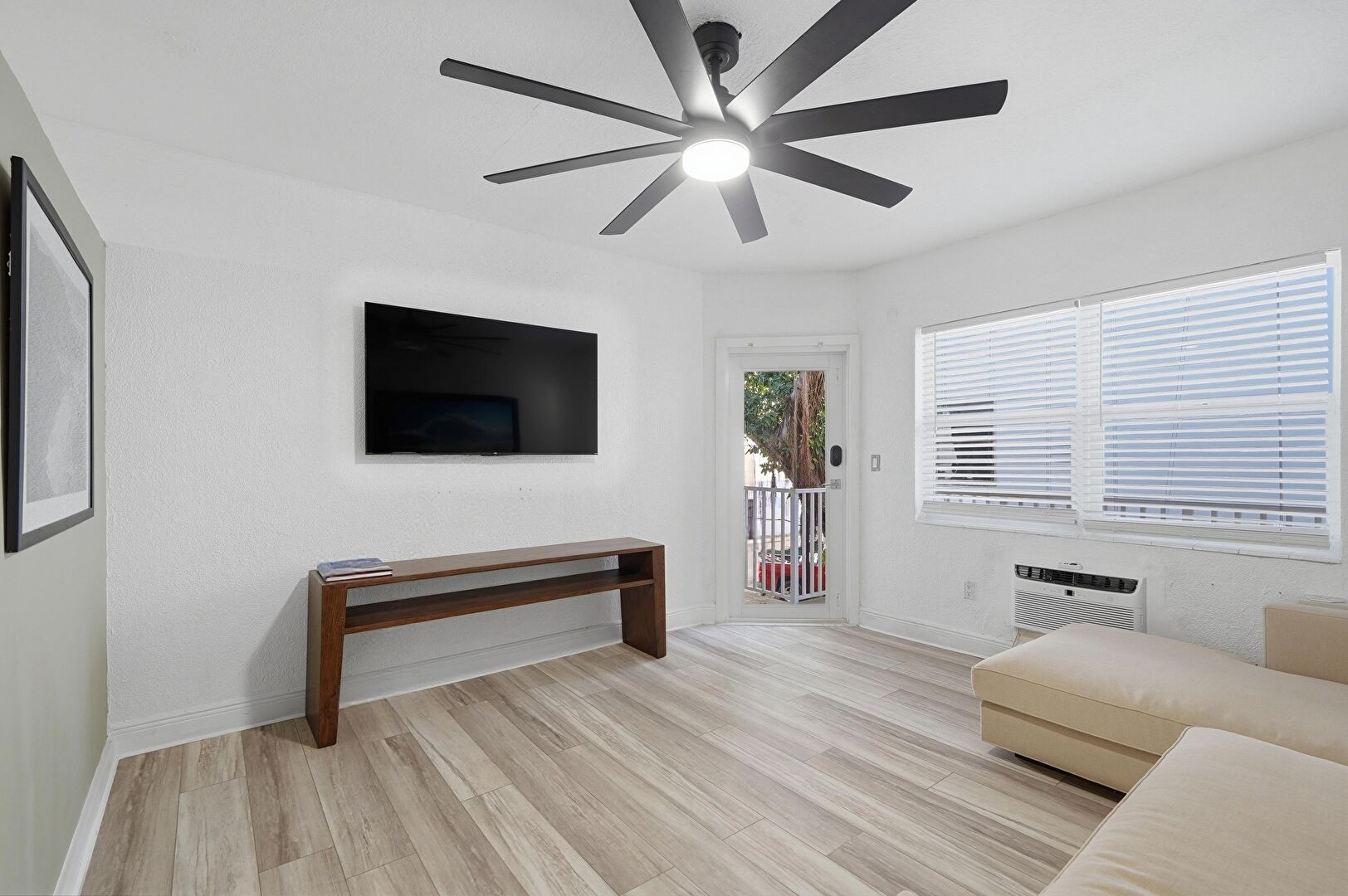 Barn Door, Baseboards Wall, Ceiling Fan, Drywall, Natural Light, Wall Mounted Ac, Wood Finish Floor, Natural Light, Wall Mounted Ac, Wood Finish Floor