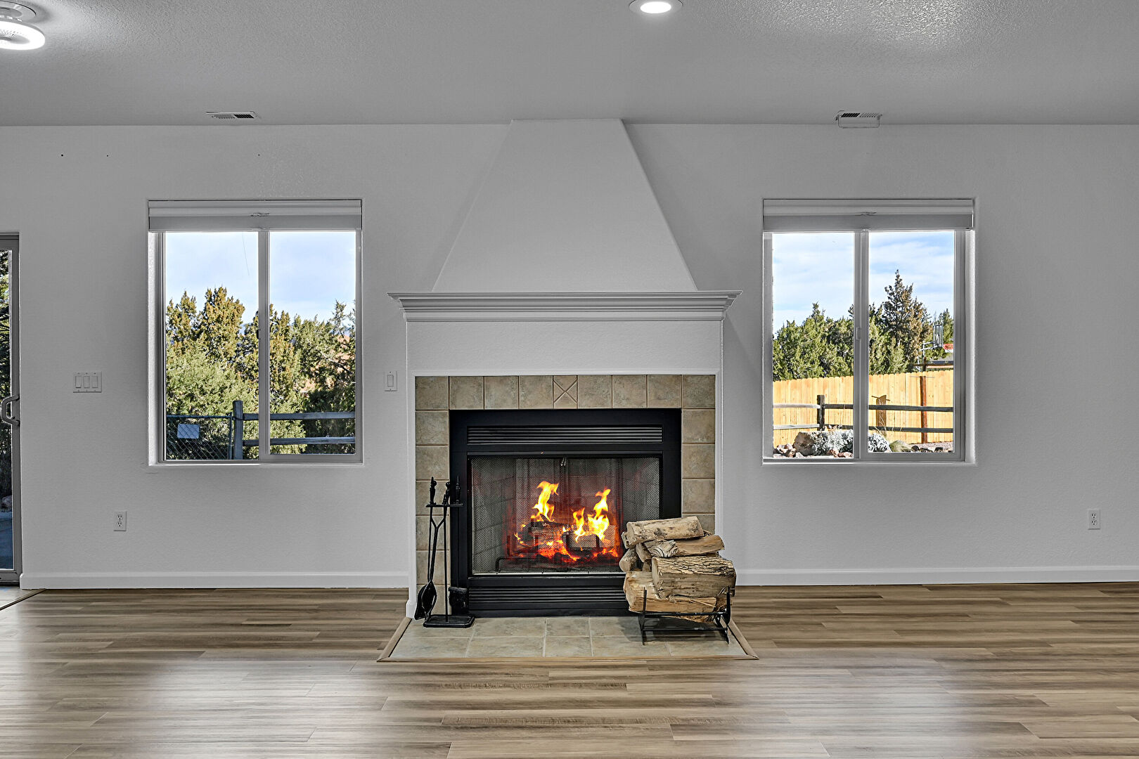 Baseboards Wall, Drywall, Recessed Lighting, Textured Ceiling, Vent, Wood Finish Floor, Fireplace
