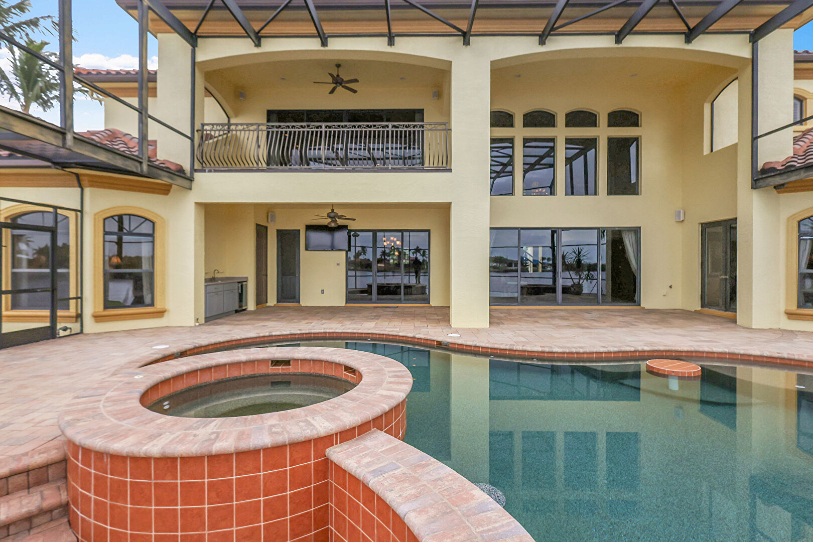 Balcony, Hot Tub, Lanai, Patio, Pool, Pool Hot Tub Combo, Sunroom, Water View, Waterfront, Hot Tub, Outdoor Kitchen, Pool Hot Tub Combo